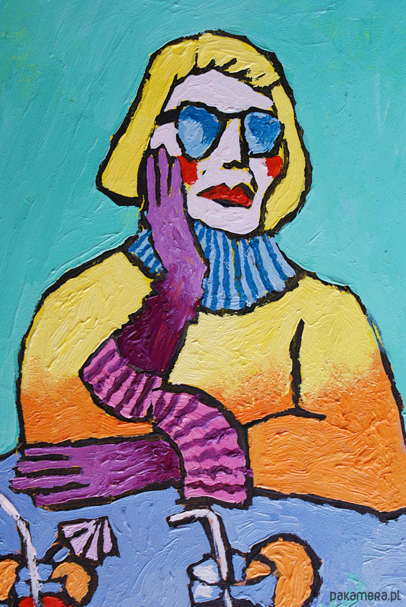 niemalże jak z kreskówki. Całość przypomina mały spektakl - żywy i groteskowy. Obraz wywołuje uśmiech, może nawet lekkie rozbawienie. Kto to tam myśli, że sztuka musi być poważna, prawda?
