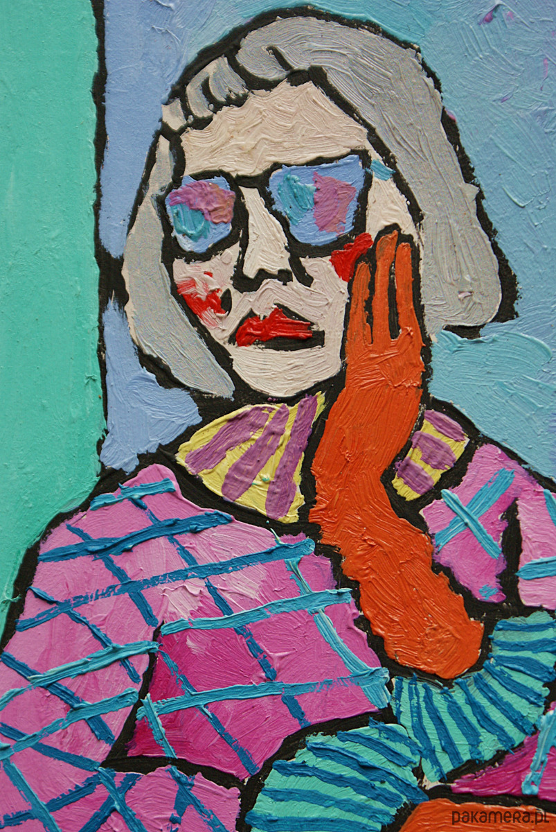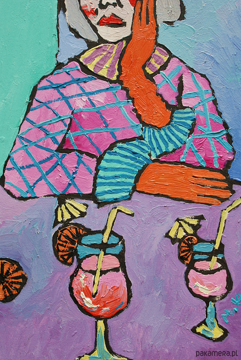 niemalże jak z kreskówki. Całość przypomina mały spektakl - żywy i groteskowy. Obraz wywołuje uśmiech, może nawet lekkie rozbawienie. Kto to tam myśli, że sztuka musi być poważna, prawda?