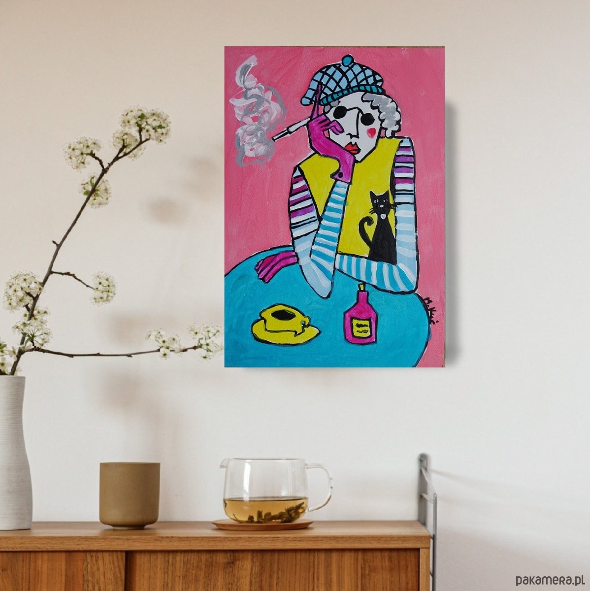 Obraz namalowany akrylami na płycie 21/29 cm, sygnowany z przodu. Jest to moja autorska kompozycja. Świetnie może być eksponowany w nowoczesnych wnętrzach o stonowanej kolorystyce. Swoimi barwami może rozjaśnić takie wnętrza, w oświetleniu dziennym, jak i sztucznym. Idealny na prezent.