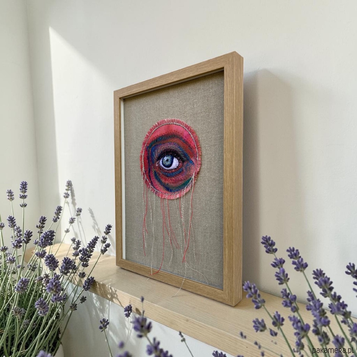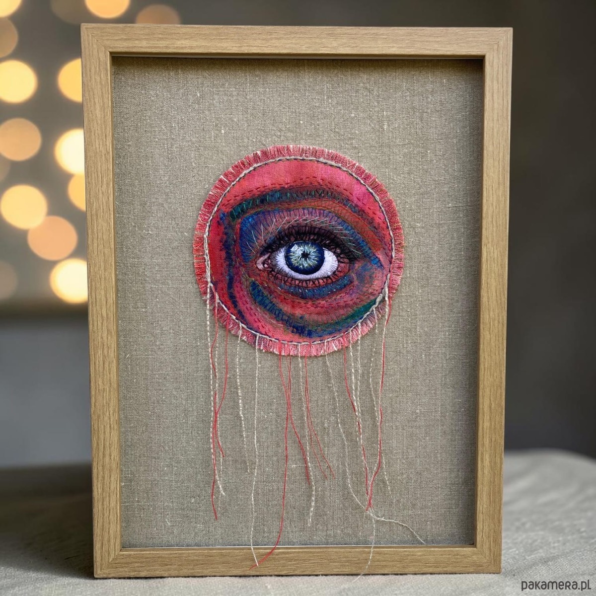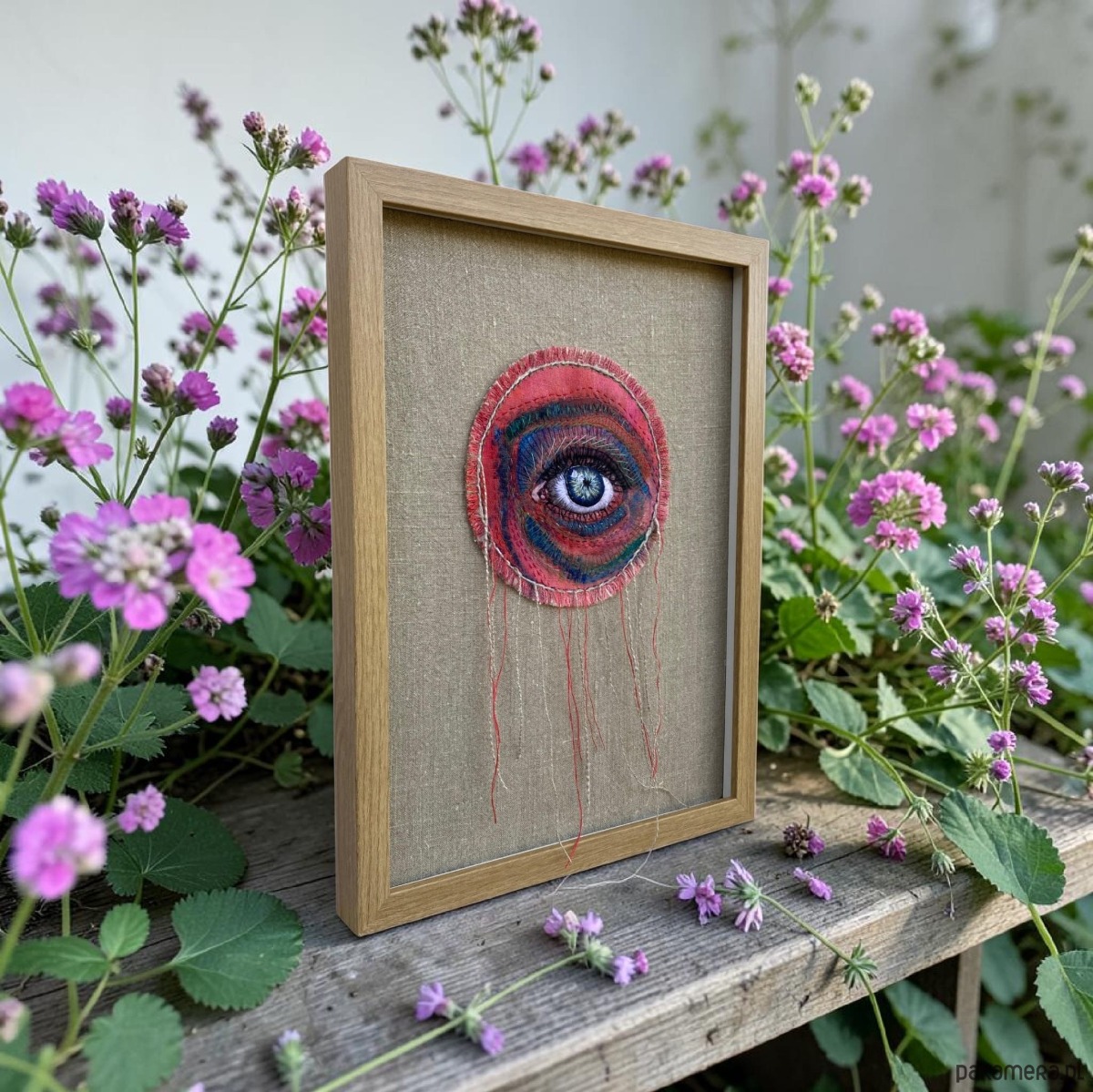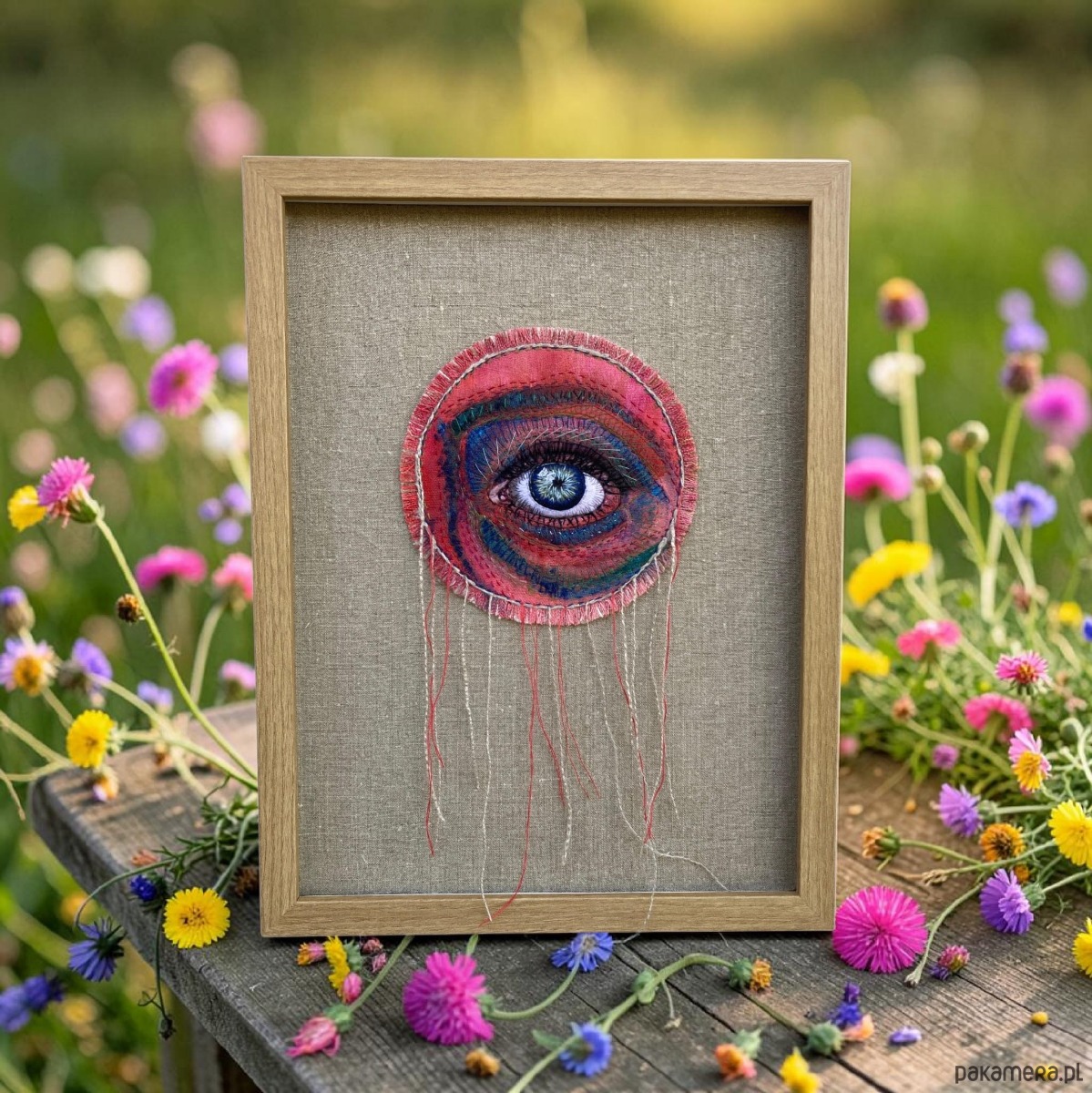 Wiszące nitki pięknie kołyszą się na wietrze, w ramie ukryta pleksi można nią przysłonić obraz.