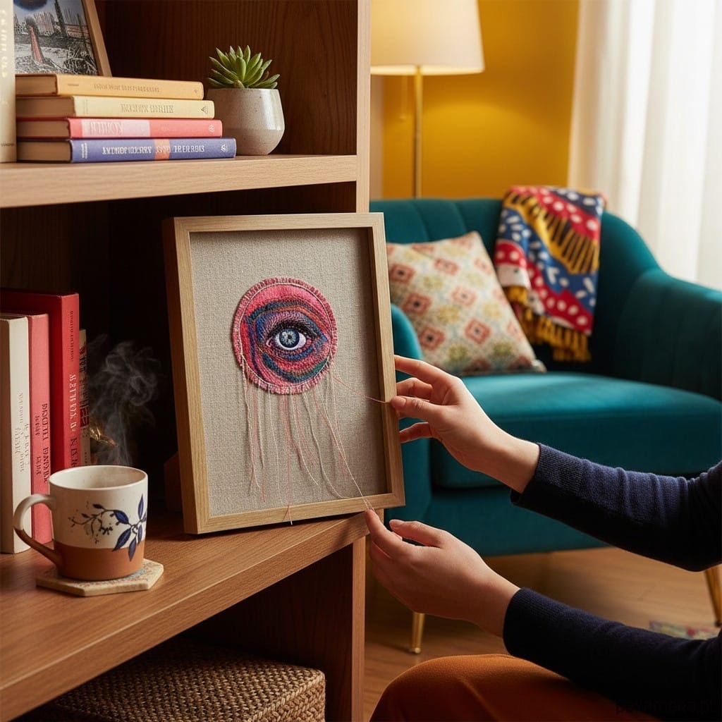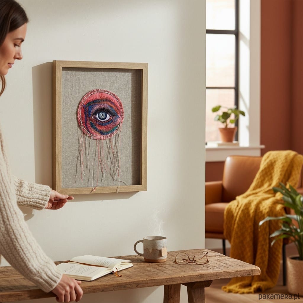 Obraz haftowany i malowany łapacz snów oko 3D.