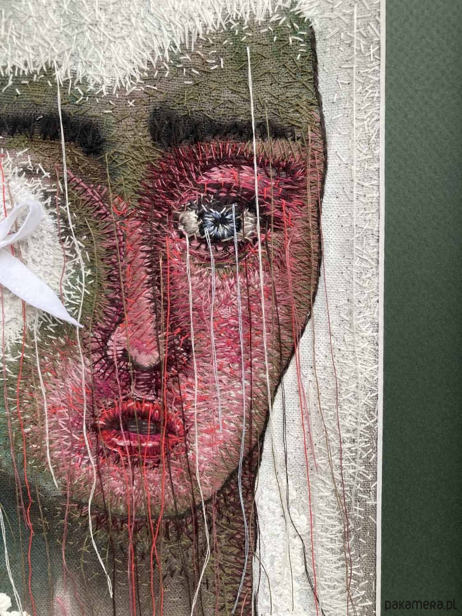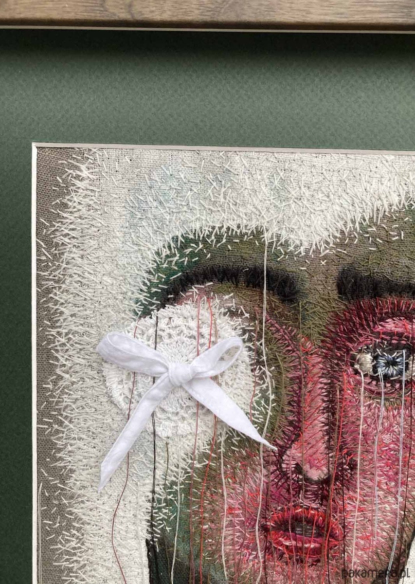 Unikat, nietuzinkowy, jedyny i niepowtarzalny Obraz namalowałam na lnianej tkaninie, ręcznie wyhaftowałam milionami zamotanych nici bawełnianych.