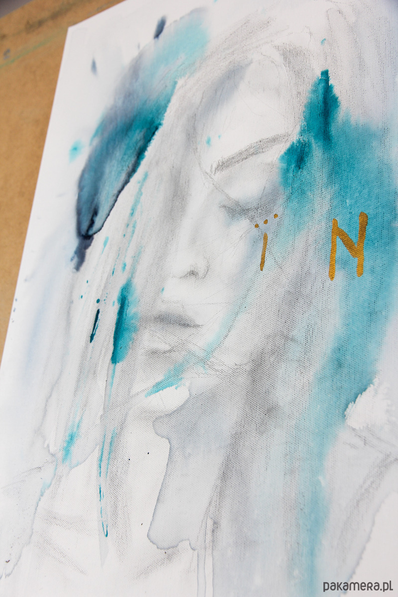 - ołówek, akwarela, akryl, na płótnie