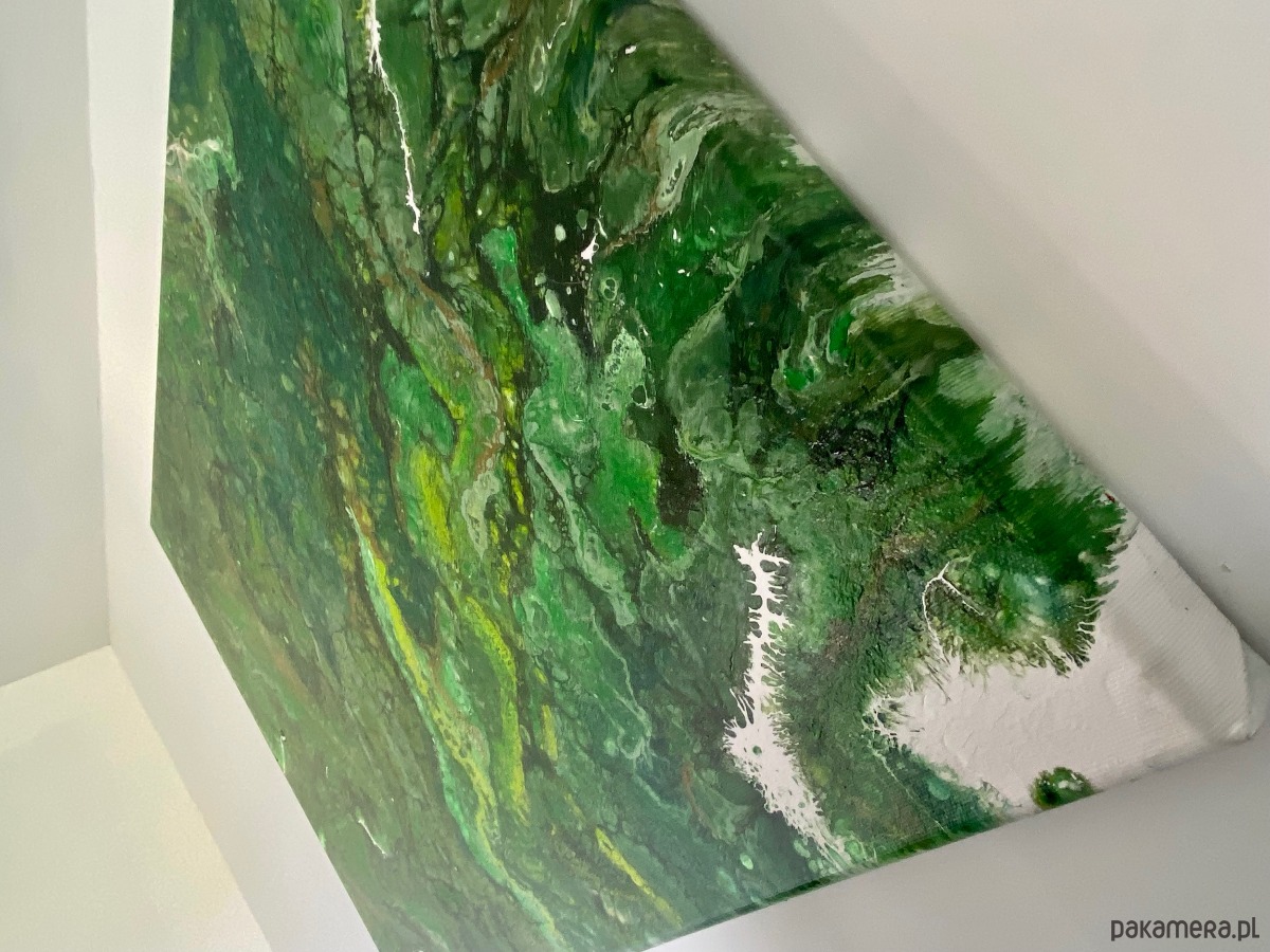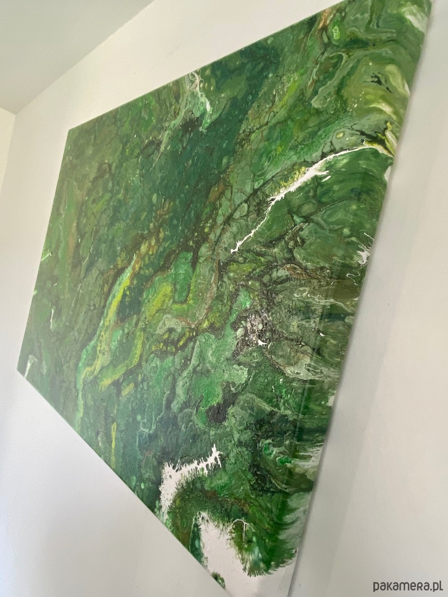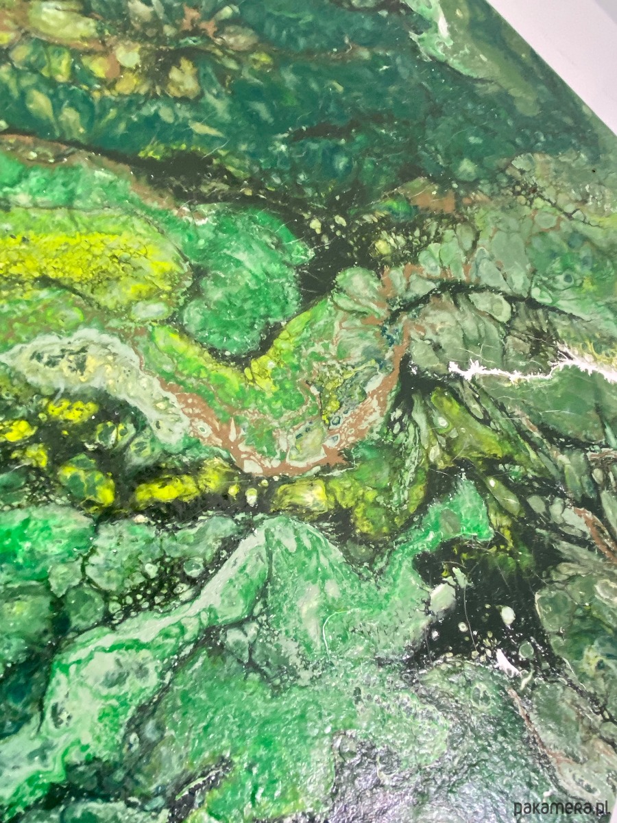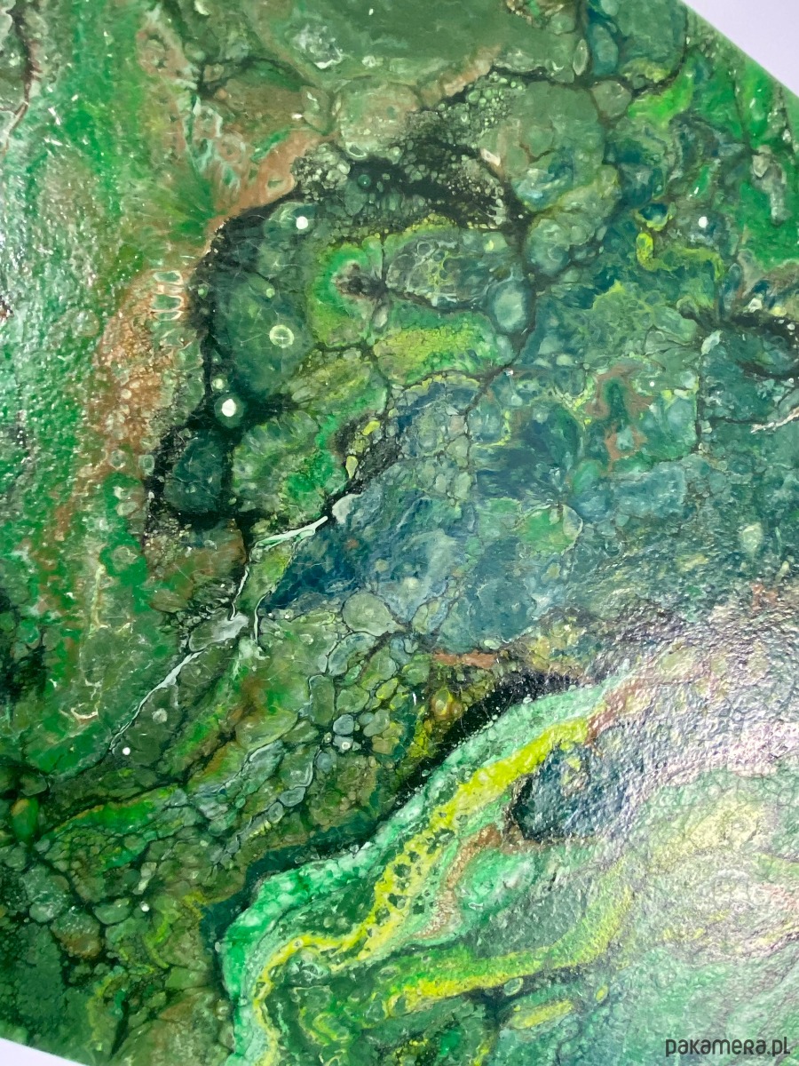 Obraz wykonany technika pouringu oraz własną. Każdy obraz tworzony tą techniką jest unikalny i jedyny w swoim rodzaju. Najwyższej jakości farby pozwalają na ukazanie prawdziwej potęgi gamy kolorystycznej wydobytej techniką pouringą w stylu rozlewających się komórek.