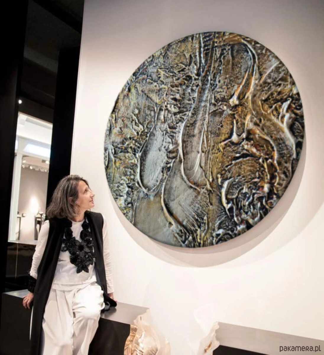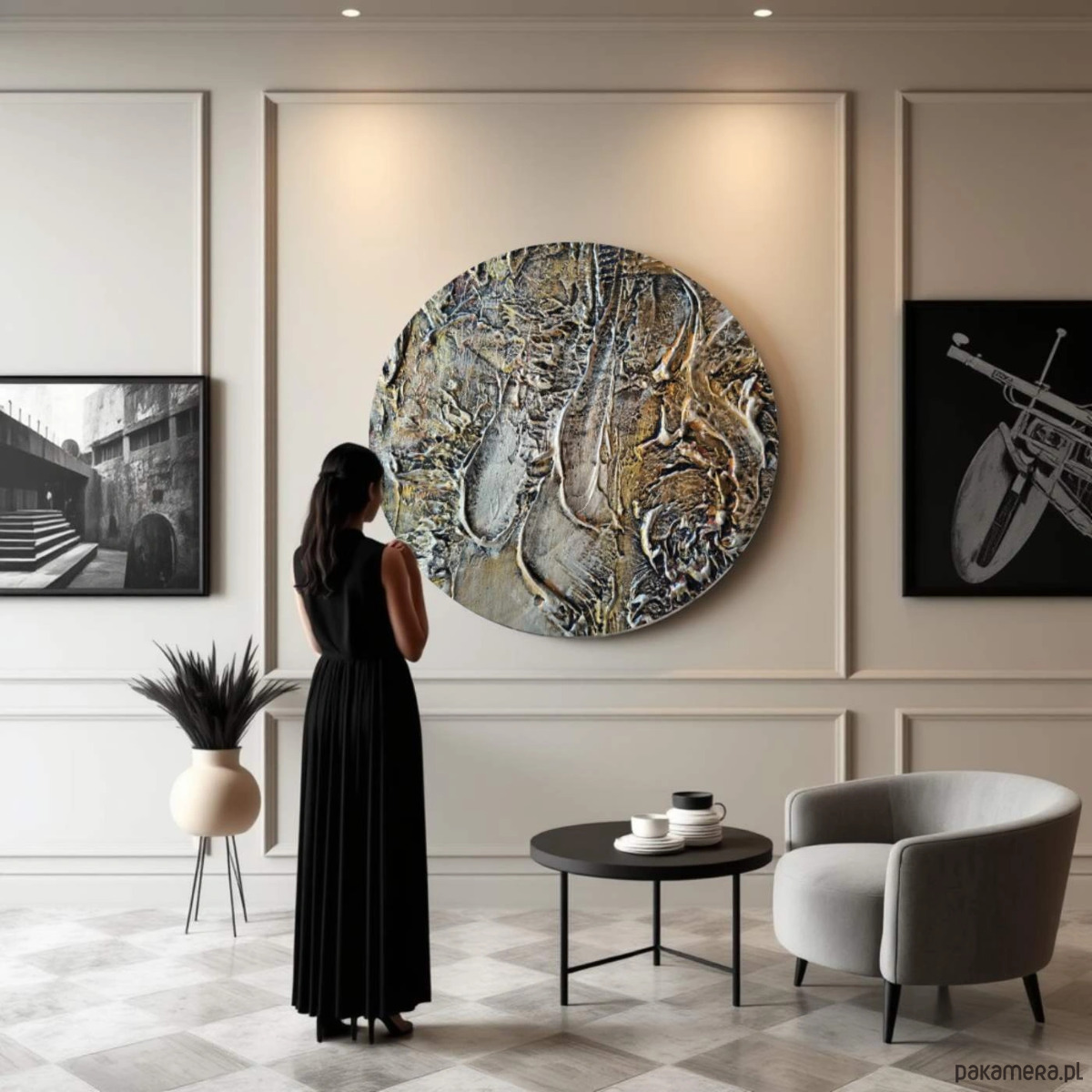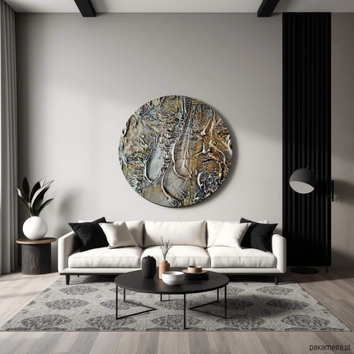 Obraz koło ręcznie malowany metaliczny fi 80cm ZAKROCKA
