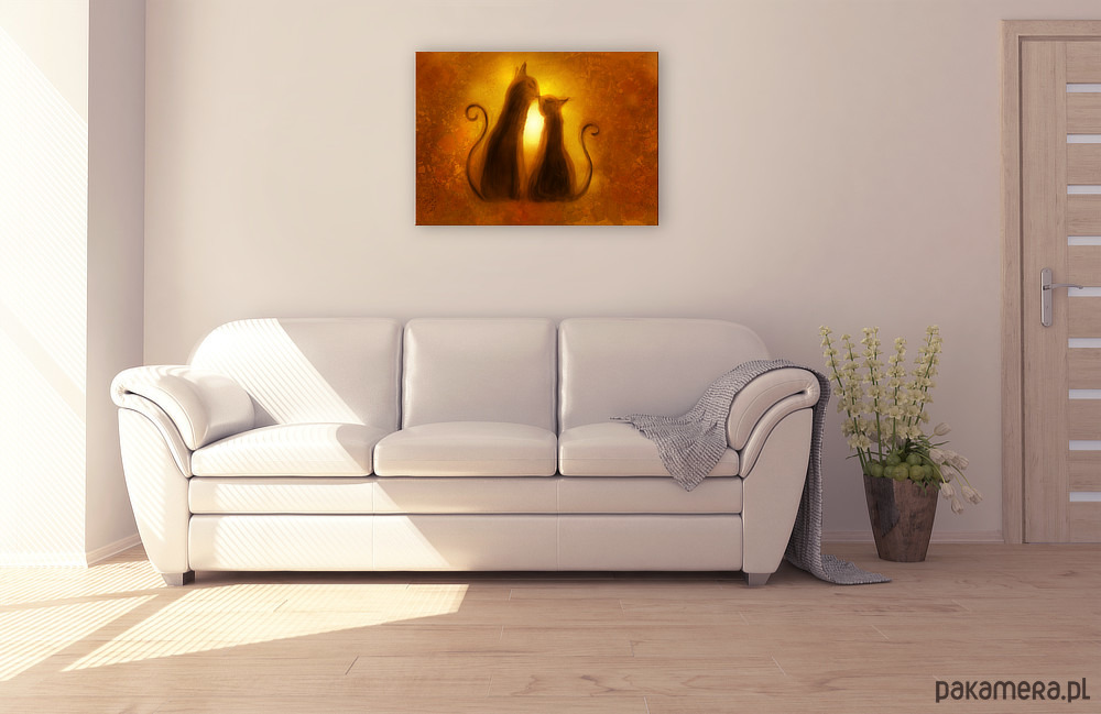 Miłosne, przytulne kotki. Harmonijna kompozycja w ciepłych kolorach. Doskonale zastąpi kominek :)
