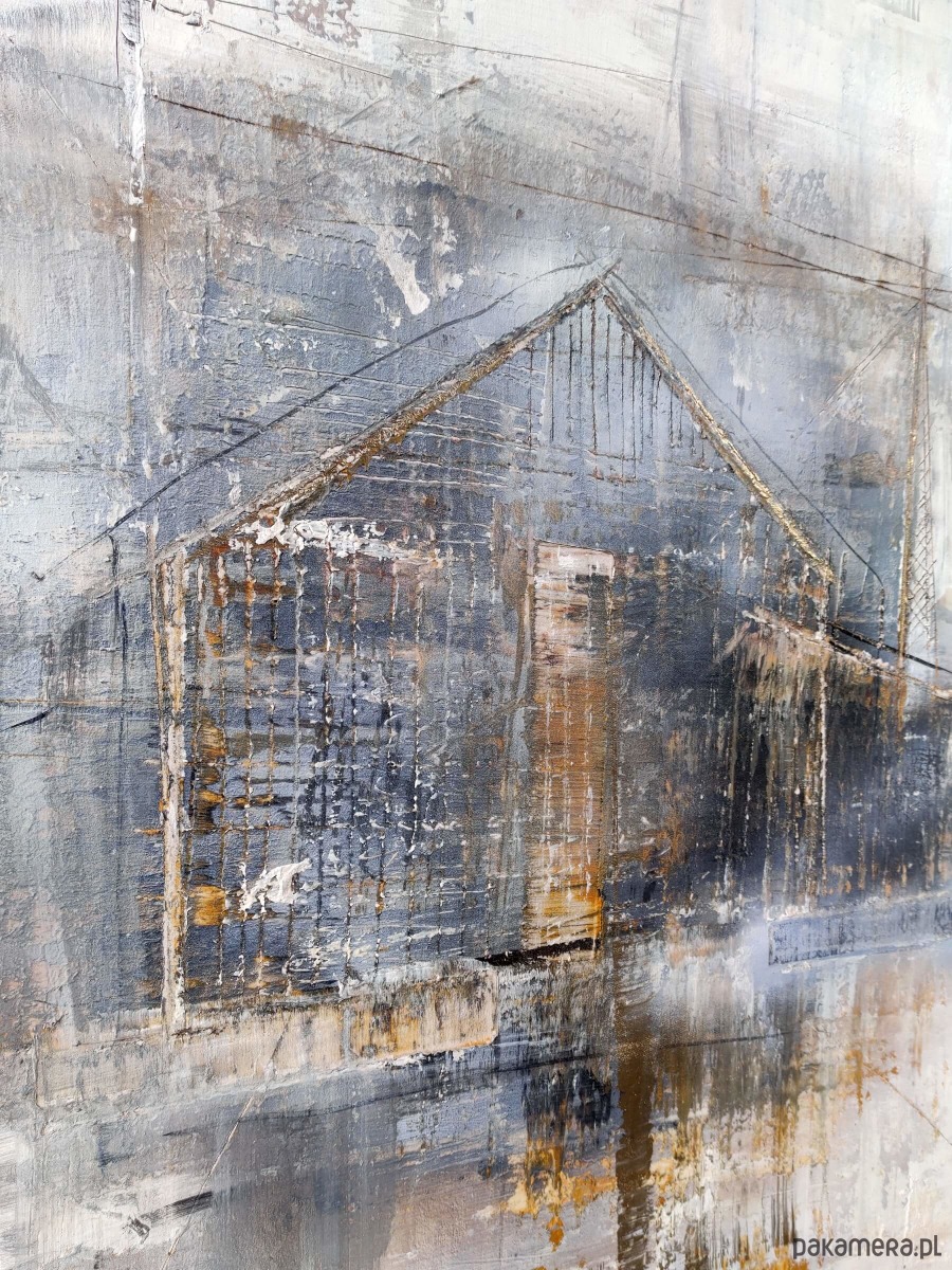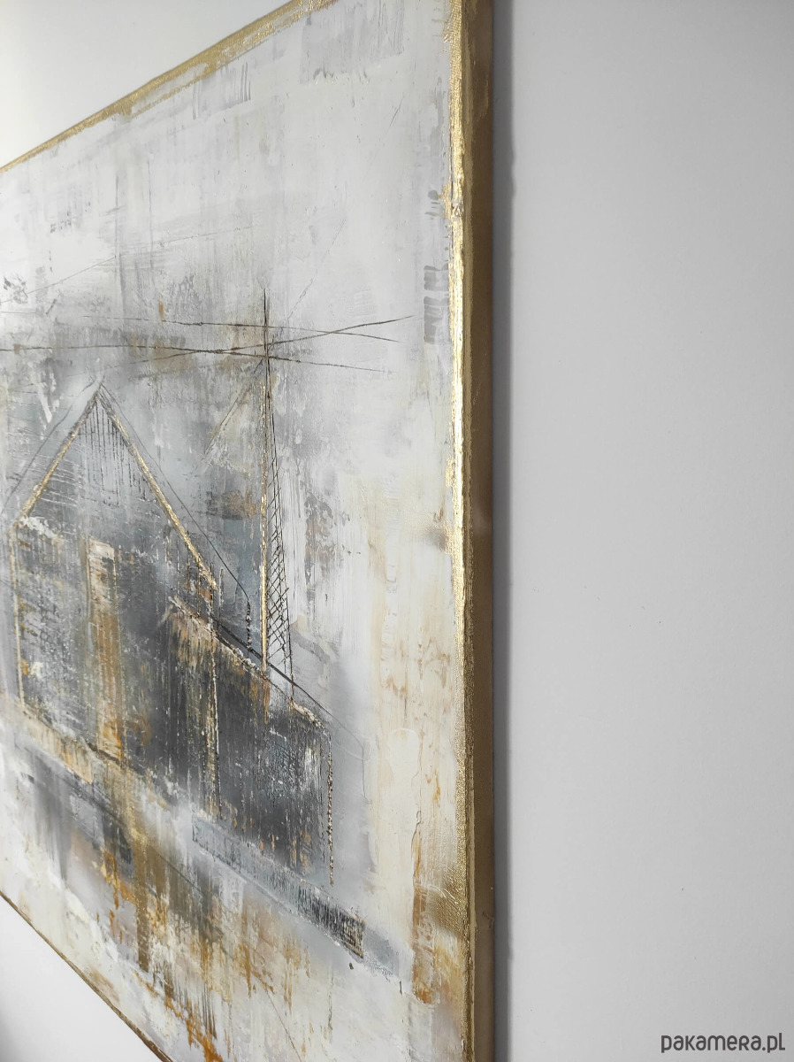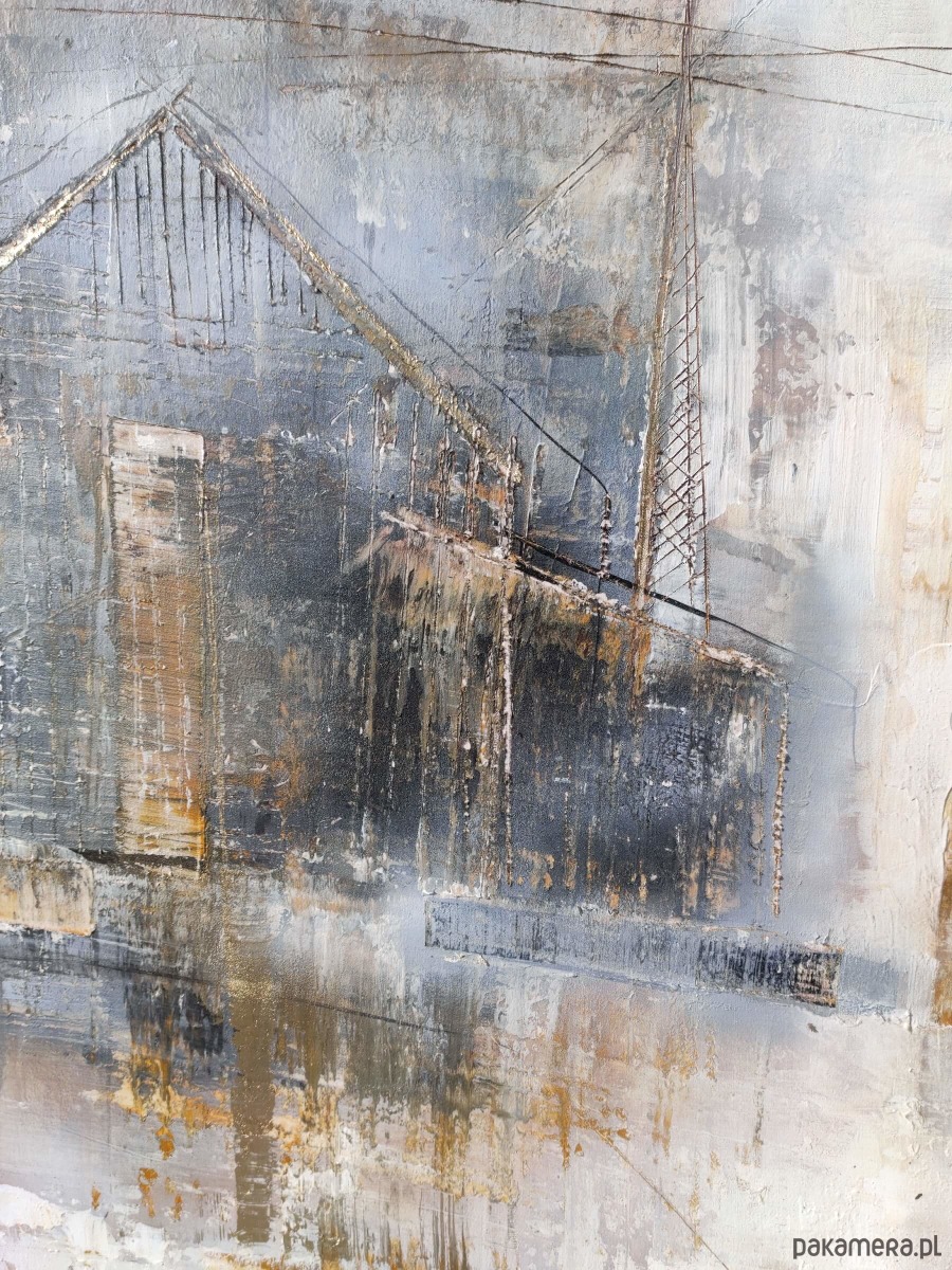 Obraz został namalowany w technice mixmedia, zabezpieczony werniksem. Gotowy do powieszenia zamalowane boki. Forma i kolorystyka obrazu podkreśli charakter nowoczesnej przestrzeni. Idealny do białych i szarych ścian, betonów oraz cegły. Obraz loftowy pasuje również do wnętrz industrial.