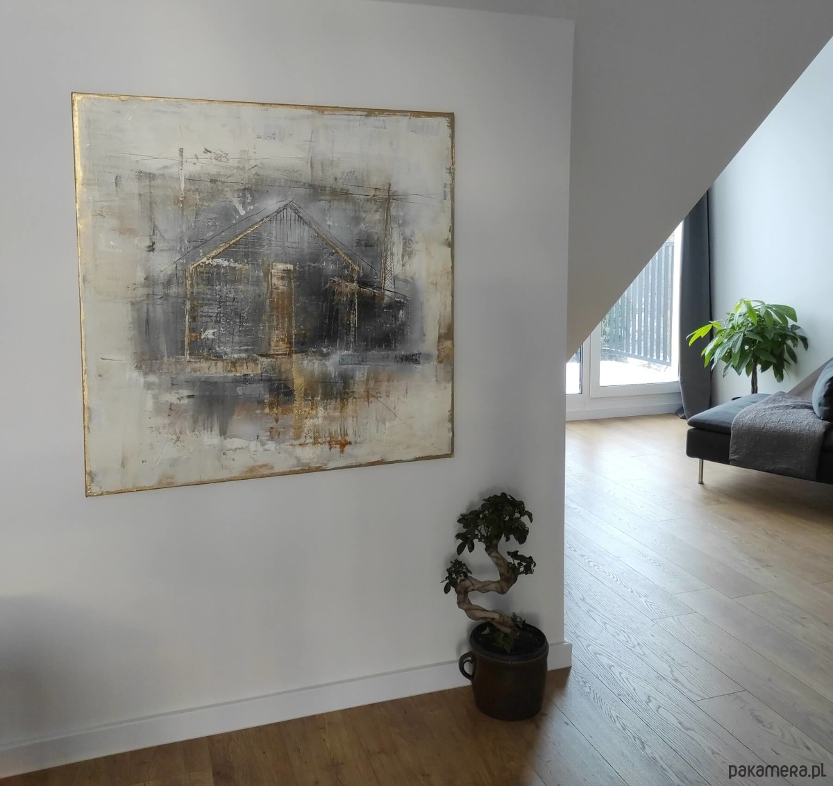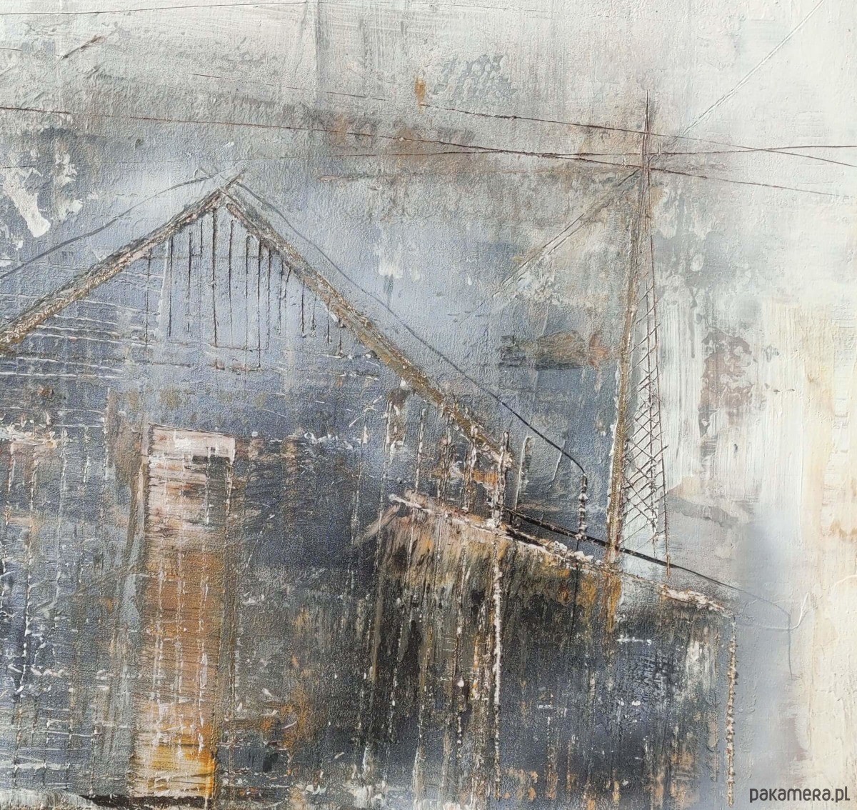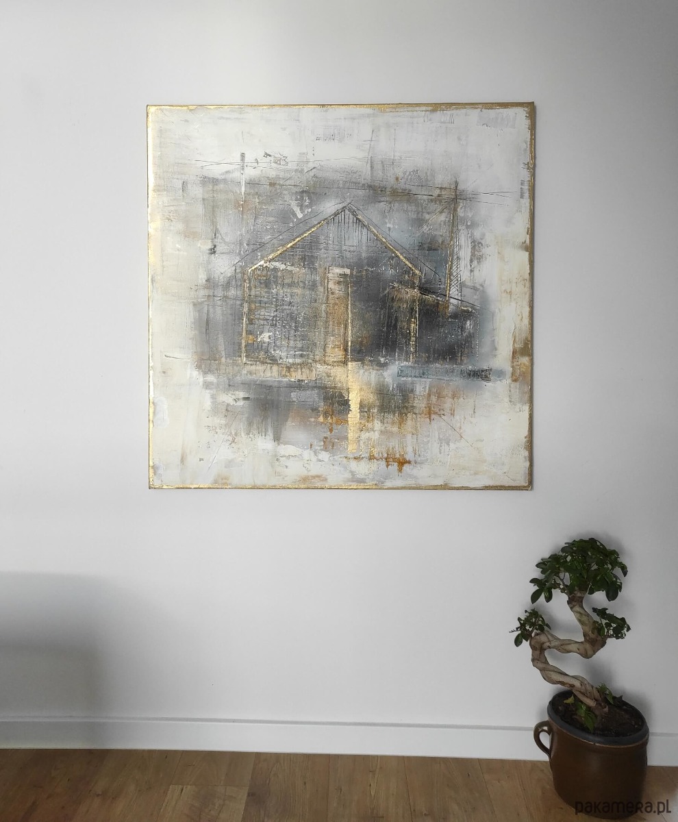 Obraz został namalowany w technice mixmedia, zabezpieczony werniksem. Gotowy do powieszenia zamalowane boki. Forma i kolorystyka obrazu podkreśli charakter nowoczesnej przestrzeni. Idealny do białych i szarych ścian, betonów oraz cegły. Obraz loftowy pasuje również do wnętrz industrial.