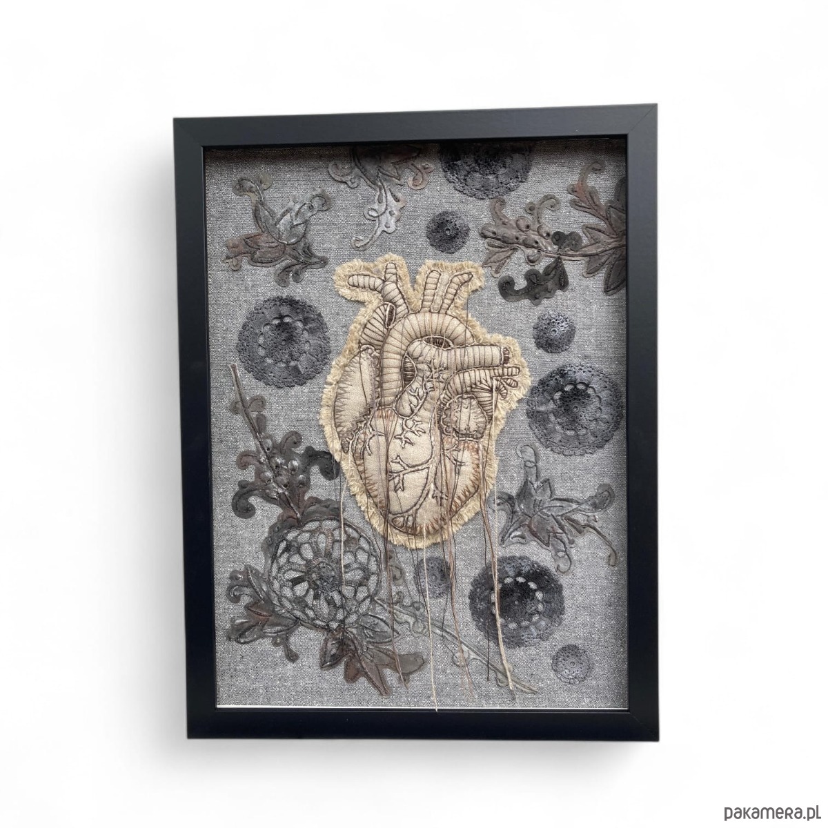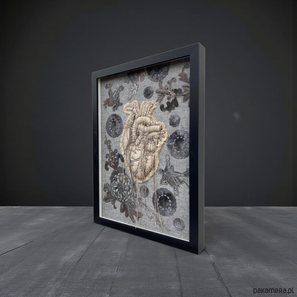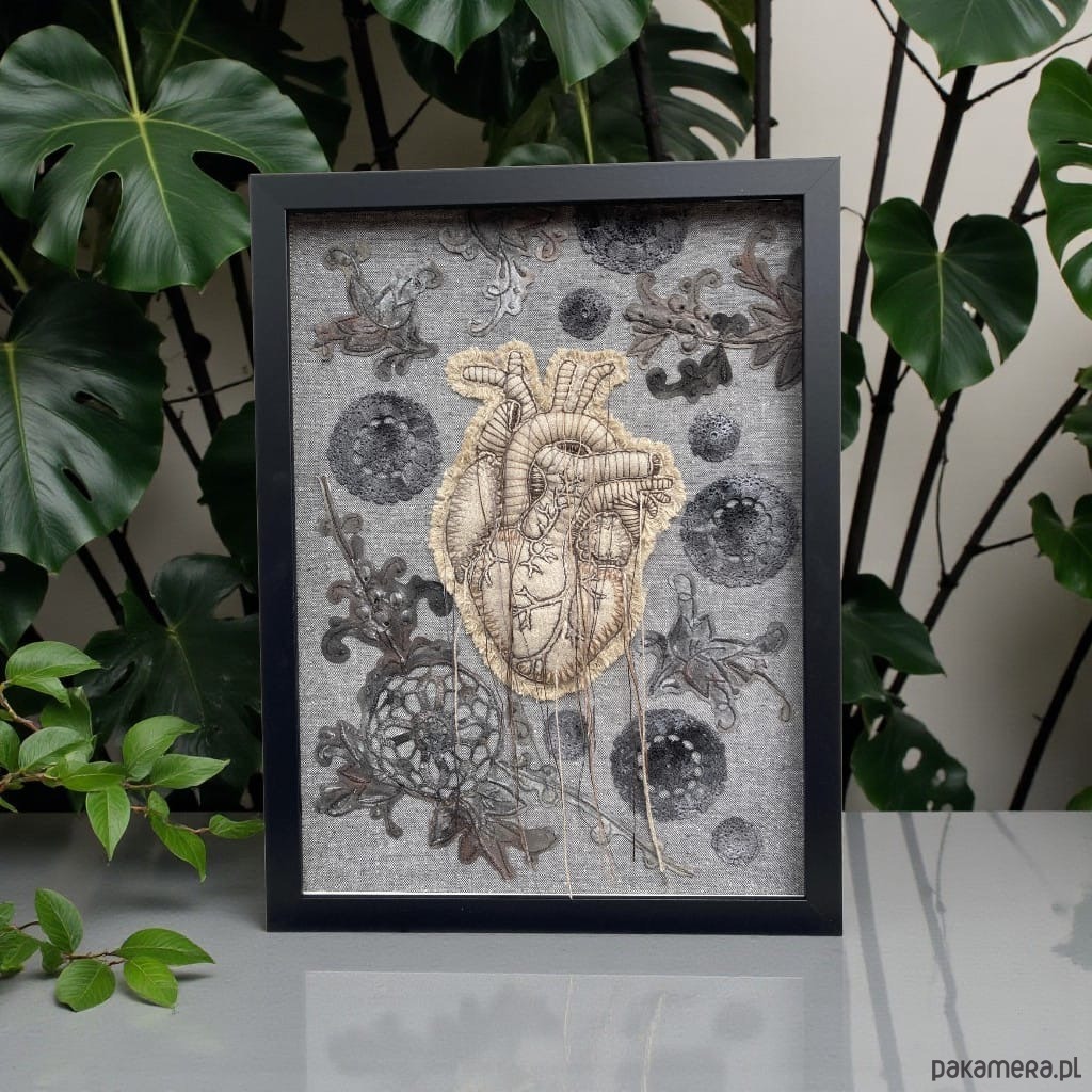 Obraz malowany i haftowany serce anatomiczne 3D.