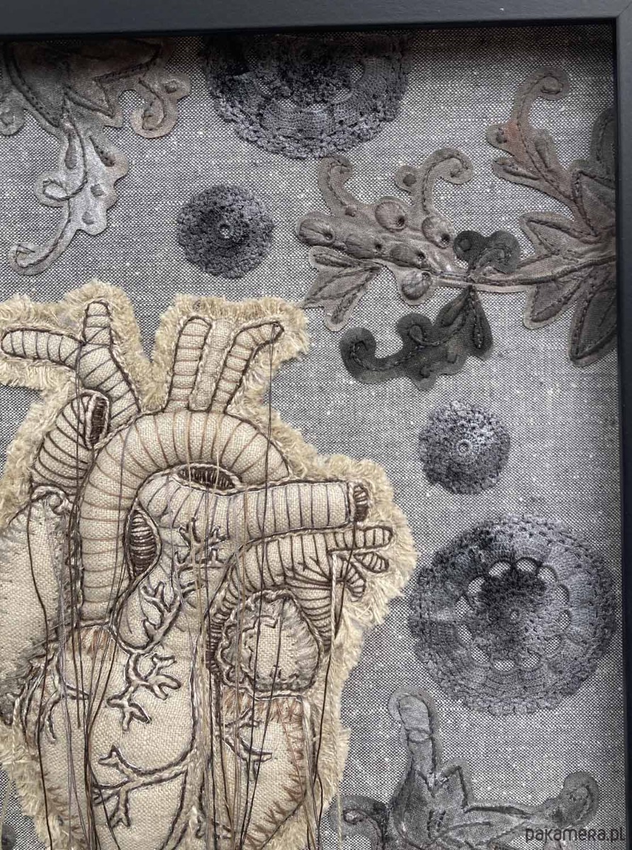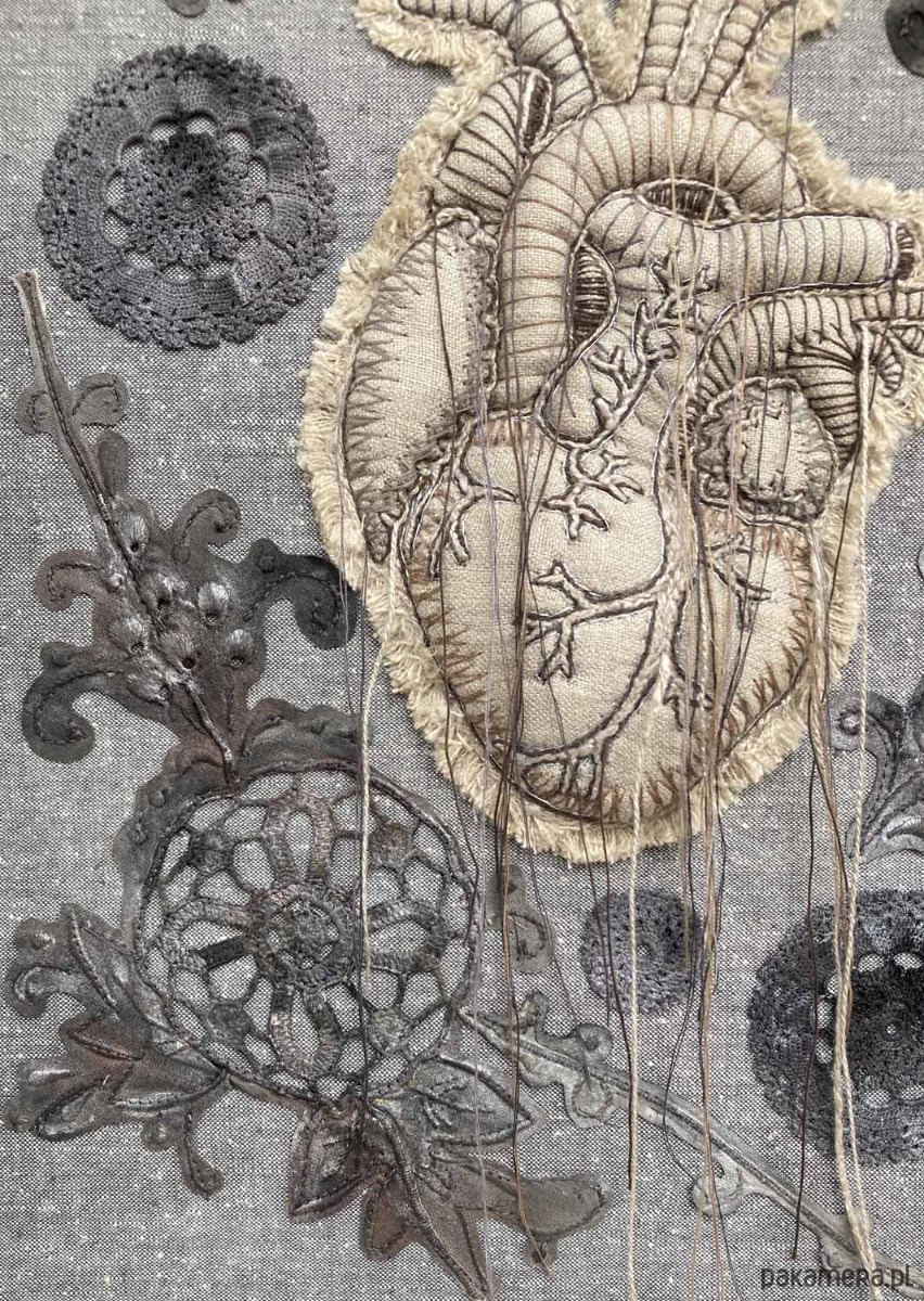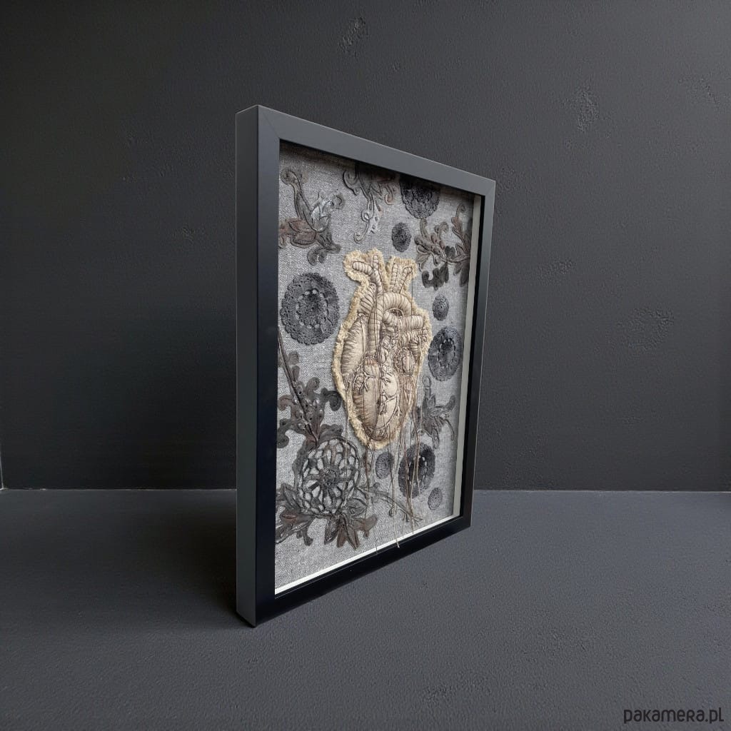 Obraz malowany i haftowany serce anatomiczne 3D.