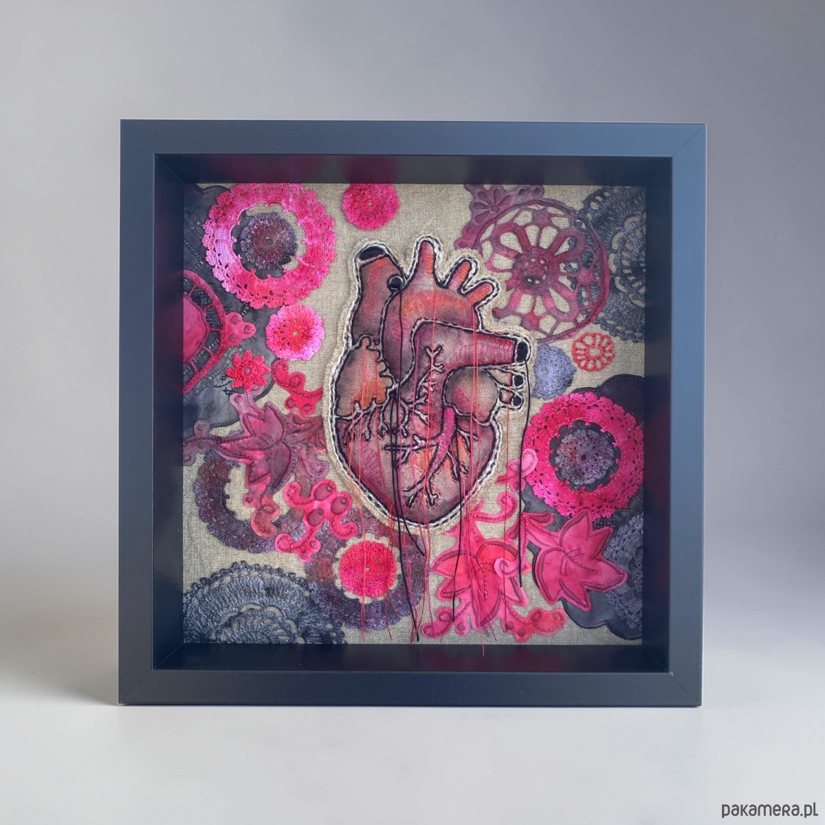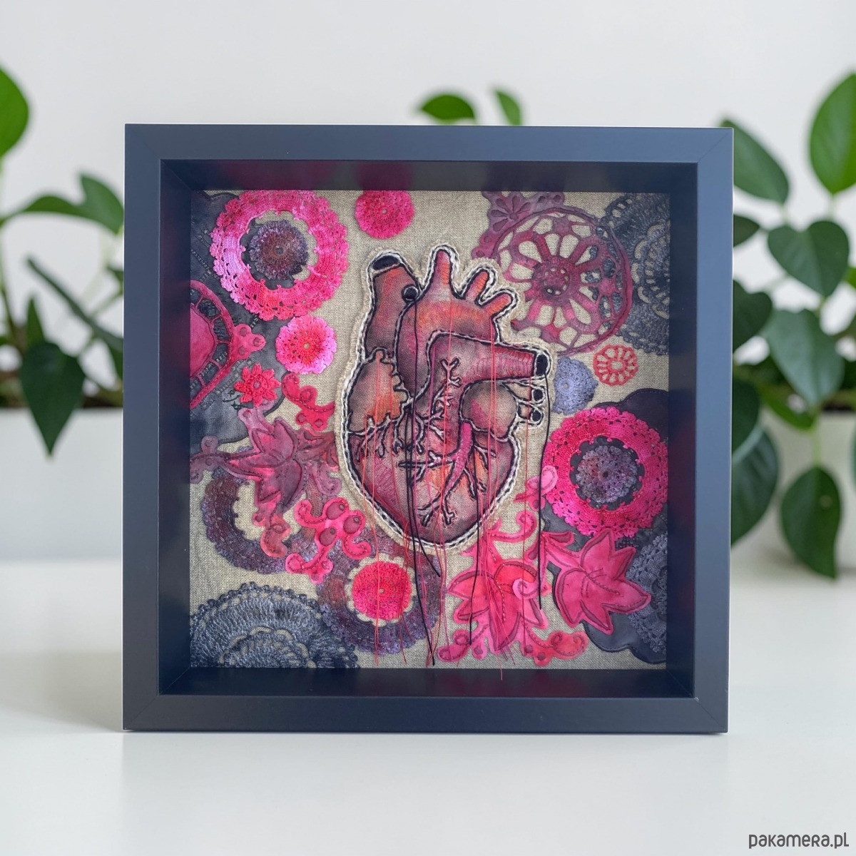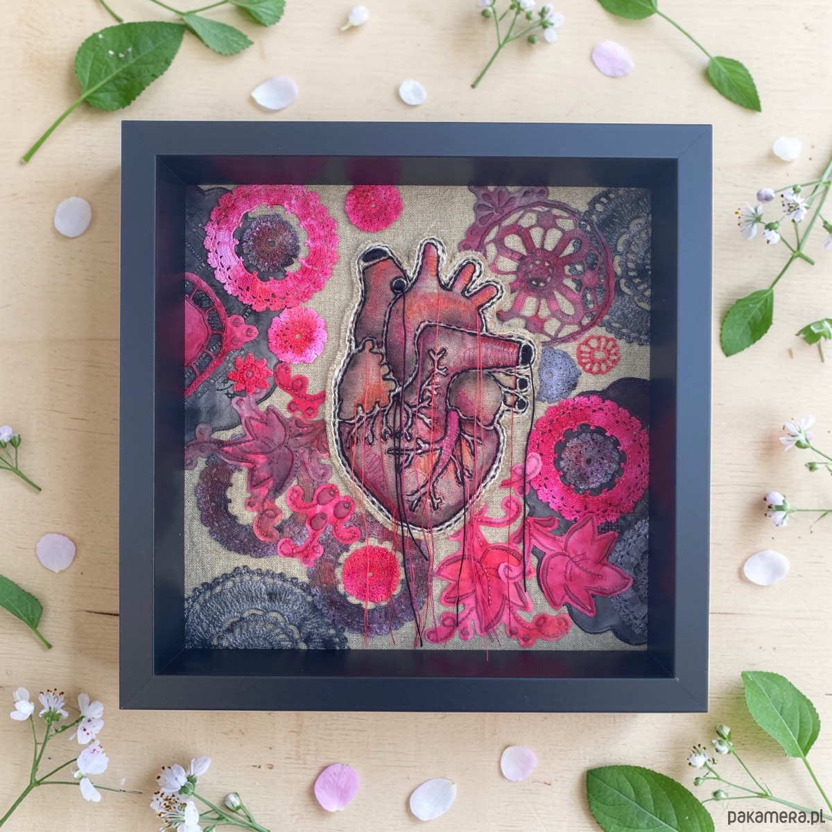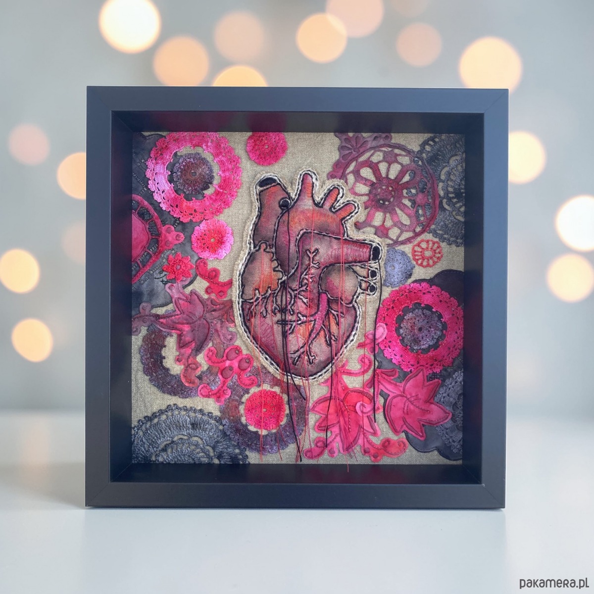 Obraz malowany i haftowany serce anatomiczne 3D.