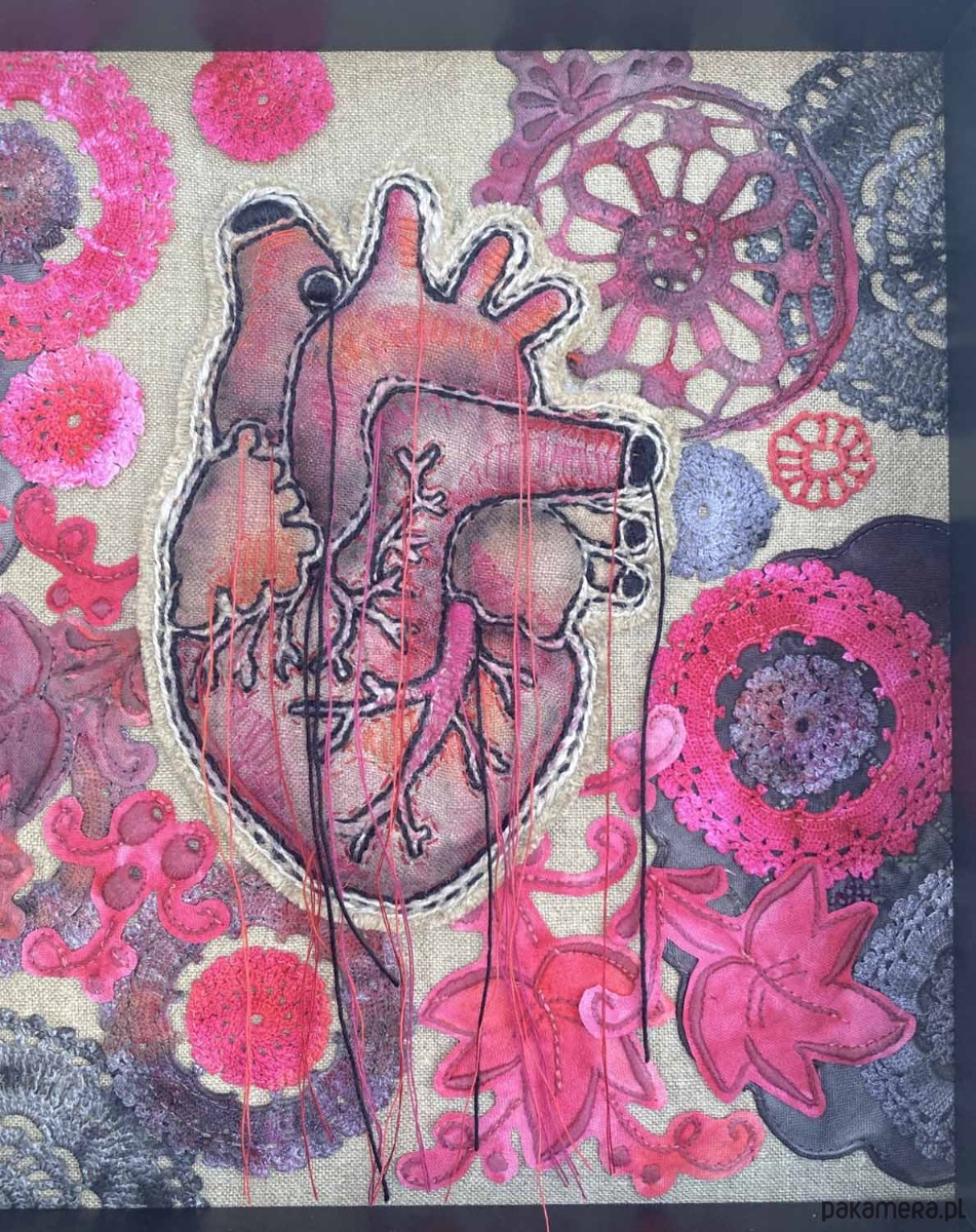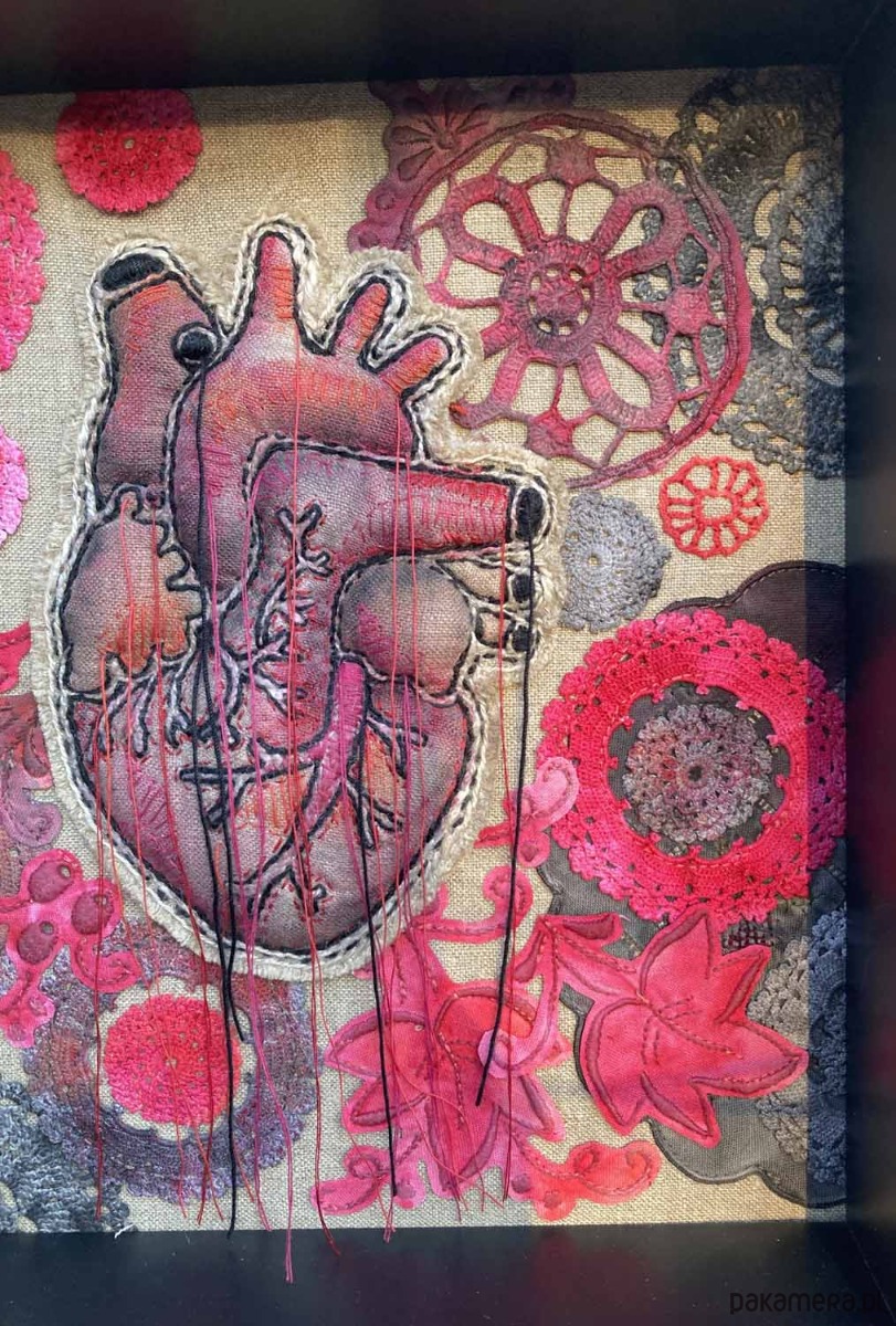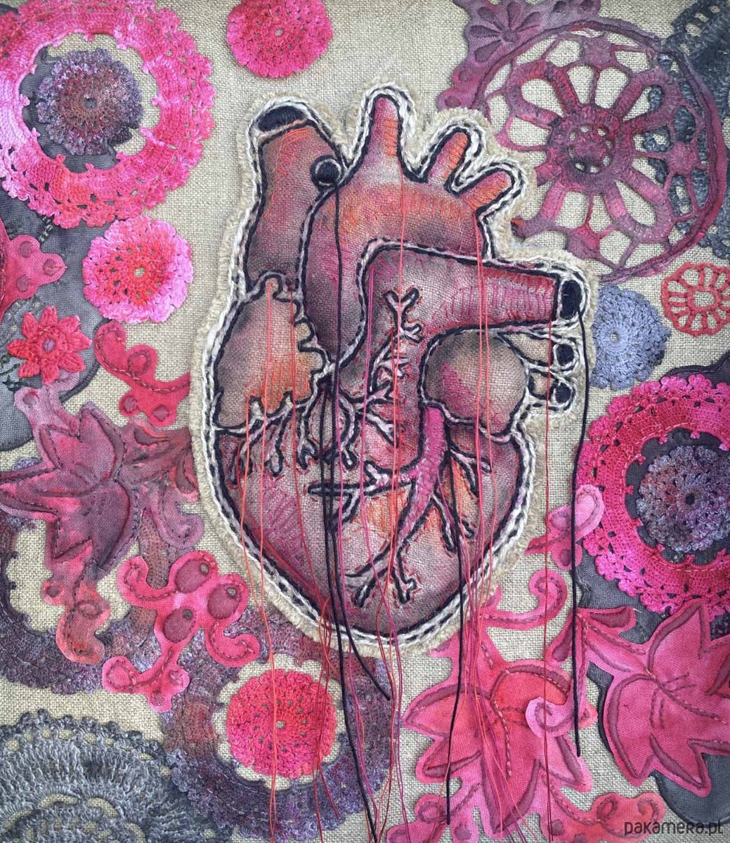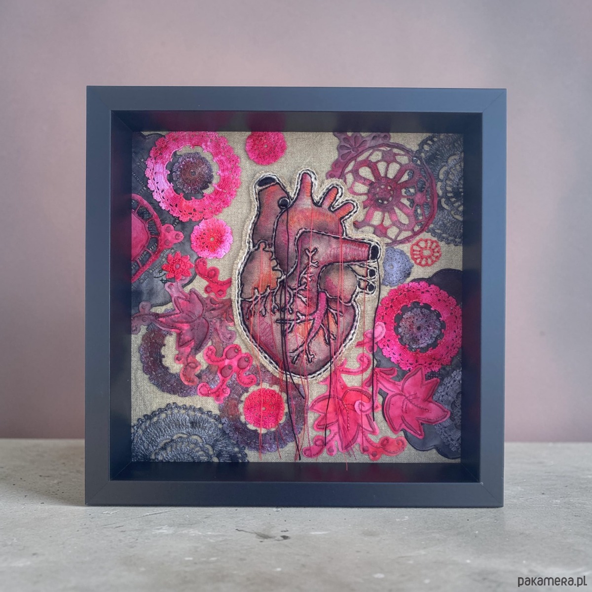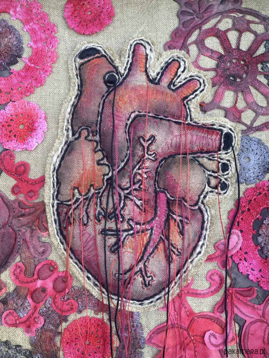 Obraz malowany i haftowany serce anatomiczne 3D.