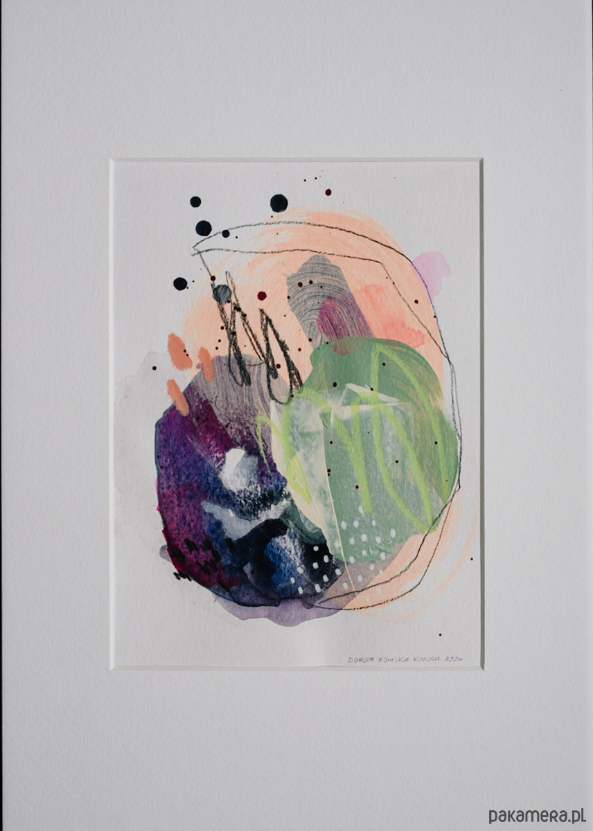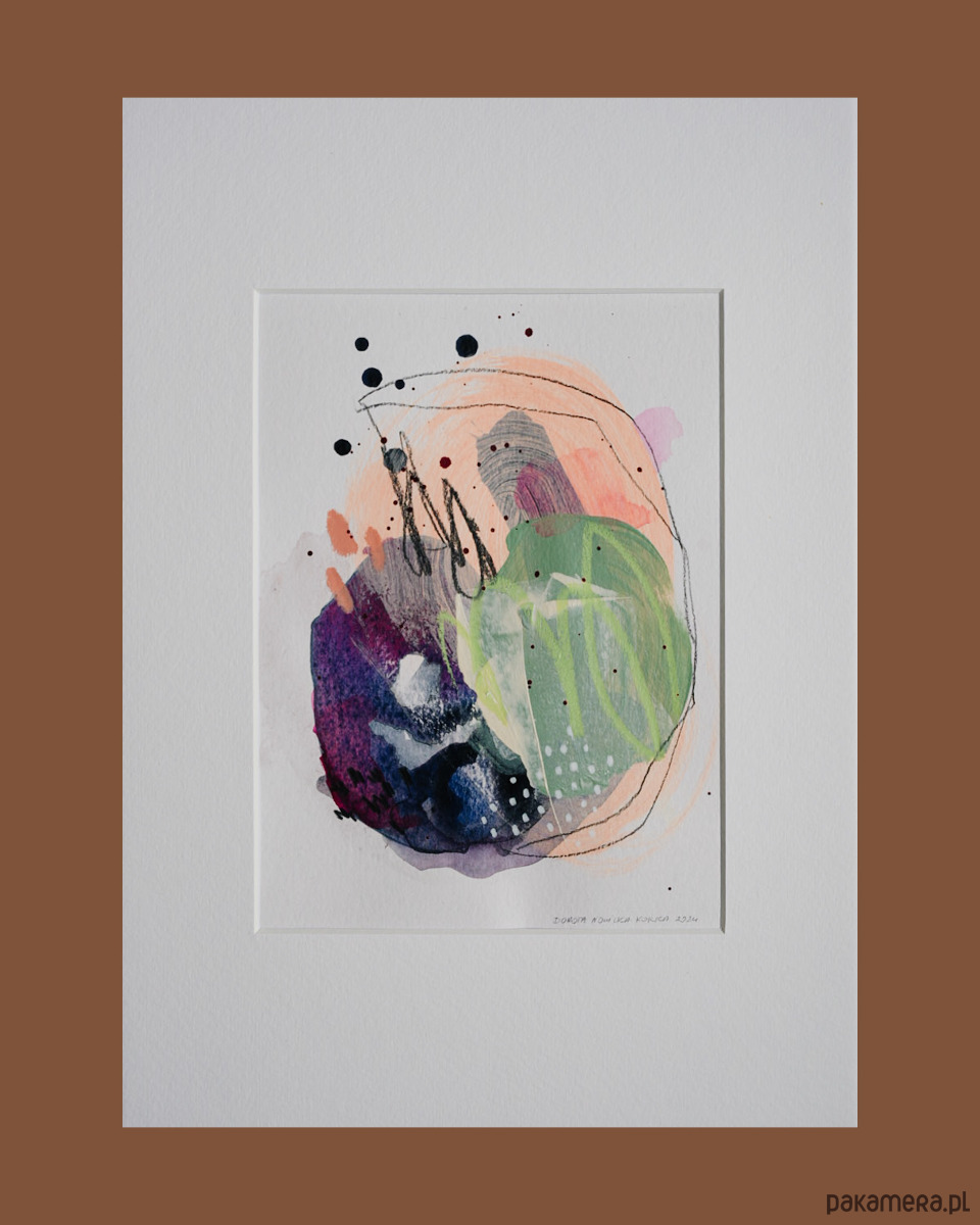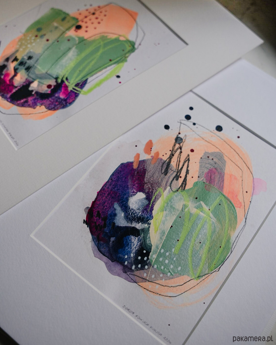 Szkice malarskie powstały podczas pracy nad obrazami na płótnach z cyklu „Światy Wewnętrzne” są one więc ważnym elementem mojego procesu malarskiego i jego materialnym zapisem. Każdy szkic jest pamiątką moich twórczych poszukiwań a jednocześnie osobnym, małym obrazem, który będzie pięknie prezentował się we wnętrzu.