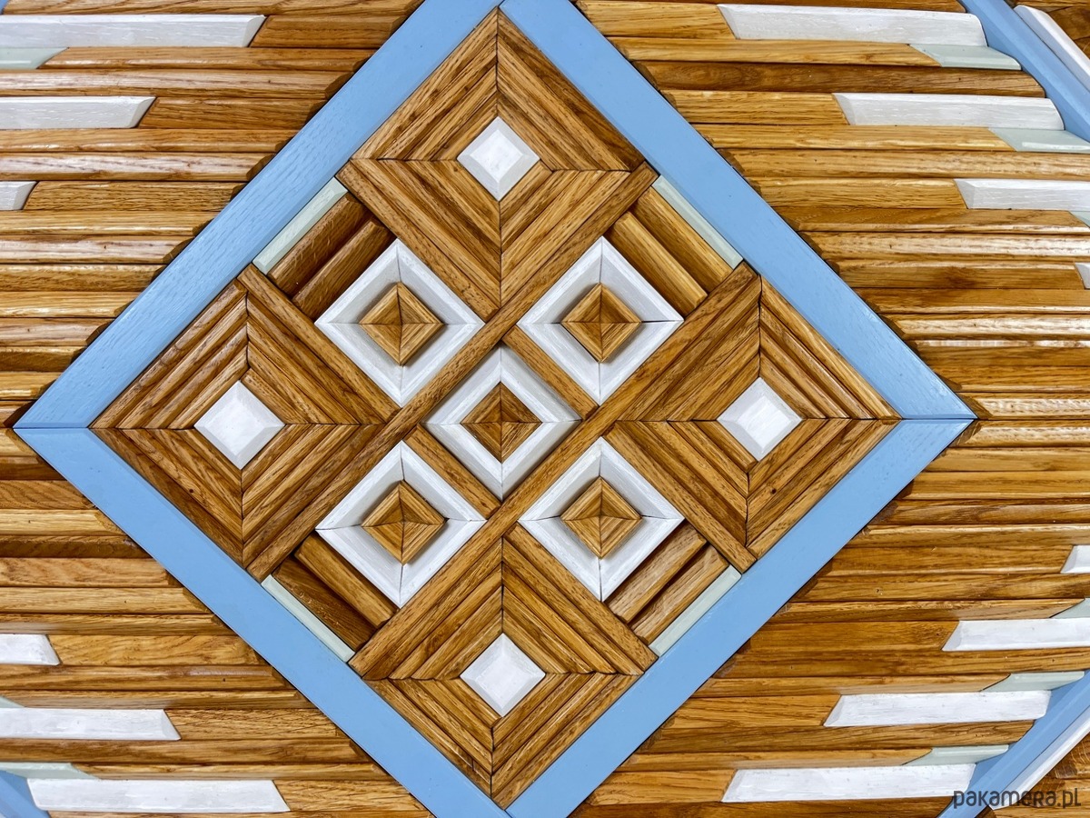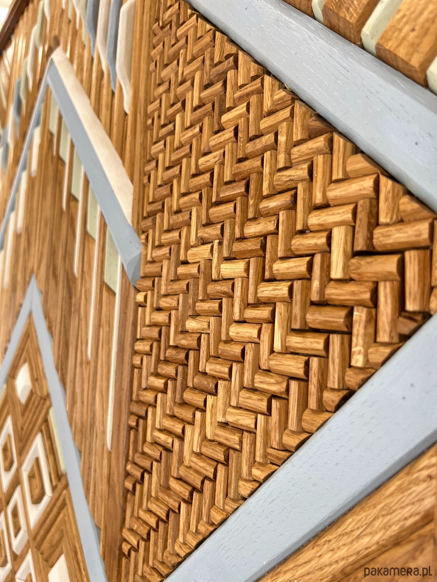 Dekoracja pasuje zarówno do wnętrz nowoczesnych, jak i klasycznych, wnosząc do nich elegancję, głębię oraz naturalne ciepło drewna. To nie jest zwykła ozdoba – to wyraz stylu i hołd dla rzemieślniczej pracy.