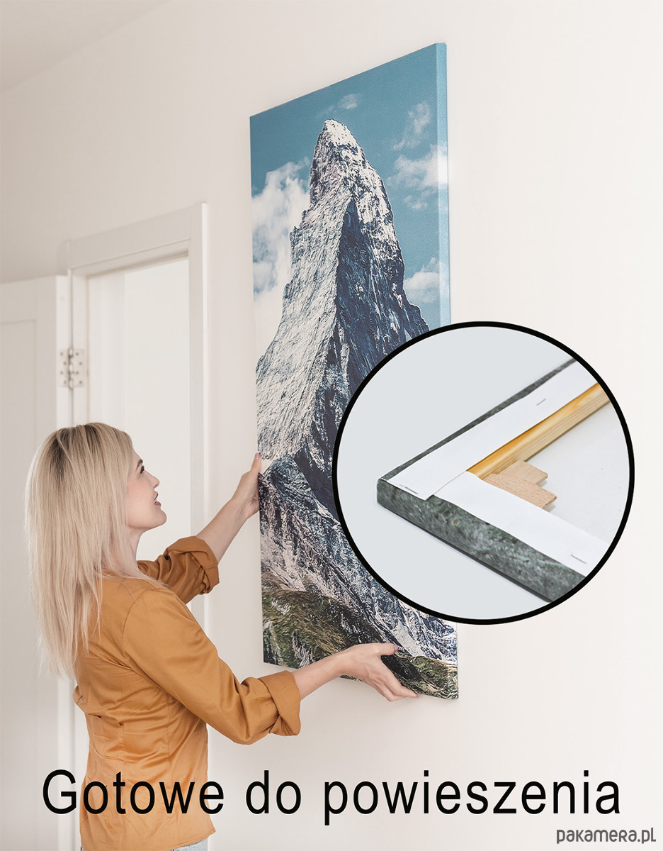 Do produkcji wykorzystano profesjonalne, wysokiej jakości płótno przeznaczone do wydruków cyfrowych, naciągnięte na sosnowy blejtram z drewnianymi klinami. Obraz posiada zawieszkę oraz zadrukowane boki i jest gotowy do powieszenia.