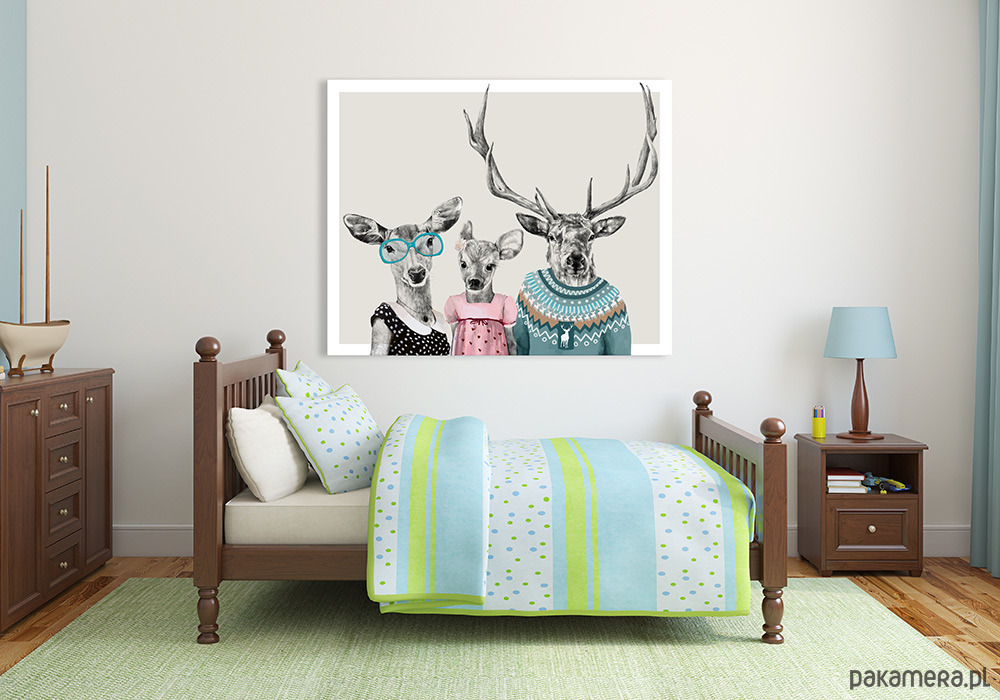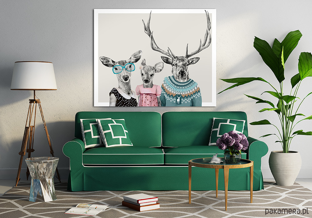 Dzięki harmonijnym barwom i modnemu stylowi skandynawskiemu obraz świetnie komponuje się z zielenią, beżem i szarością nowoczesnych wnętrz.