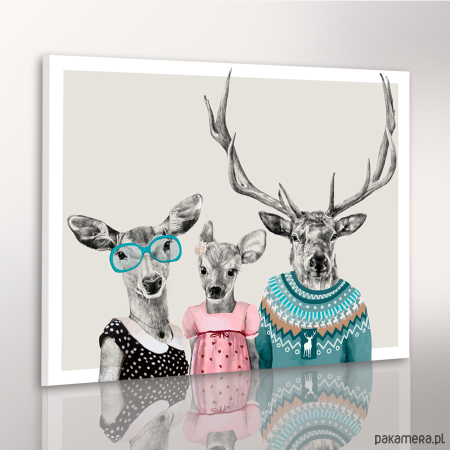 OBRAZ NA PŁÓTNIE - 100x80cm Rodzinka jeleni