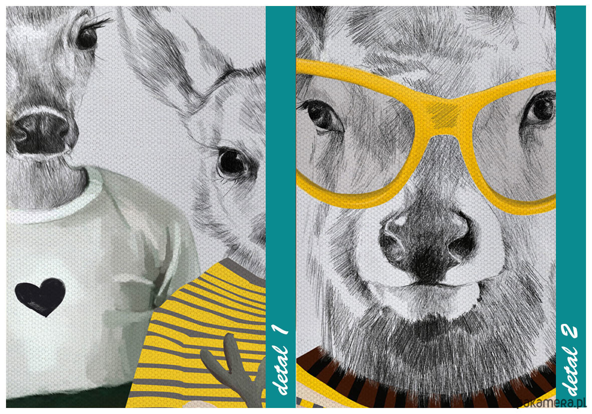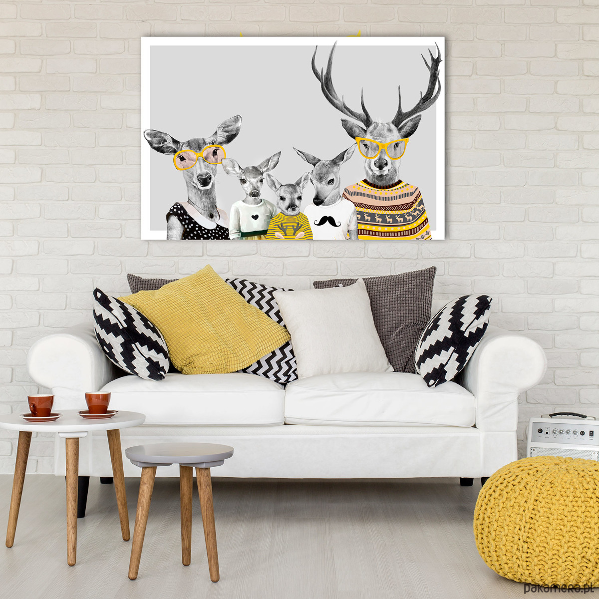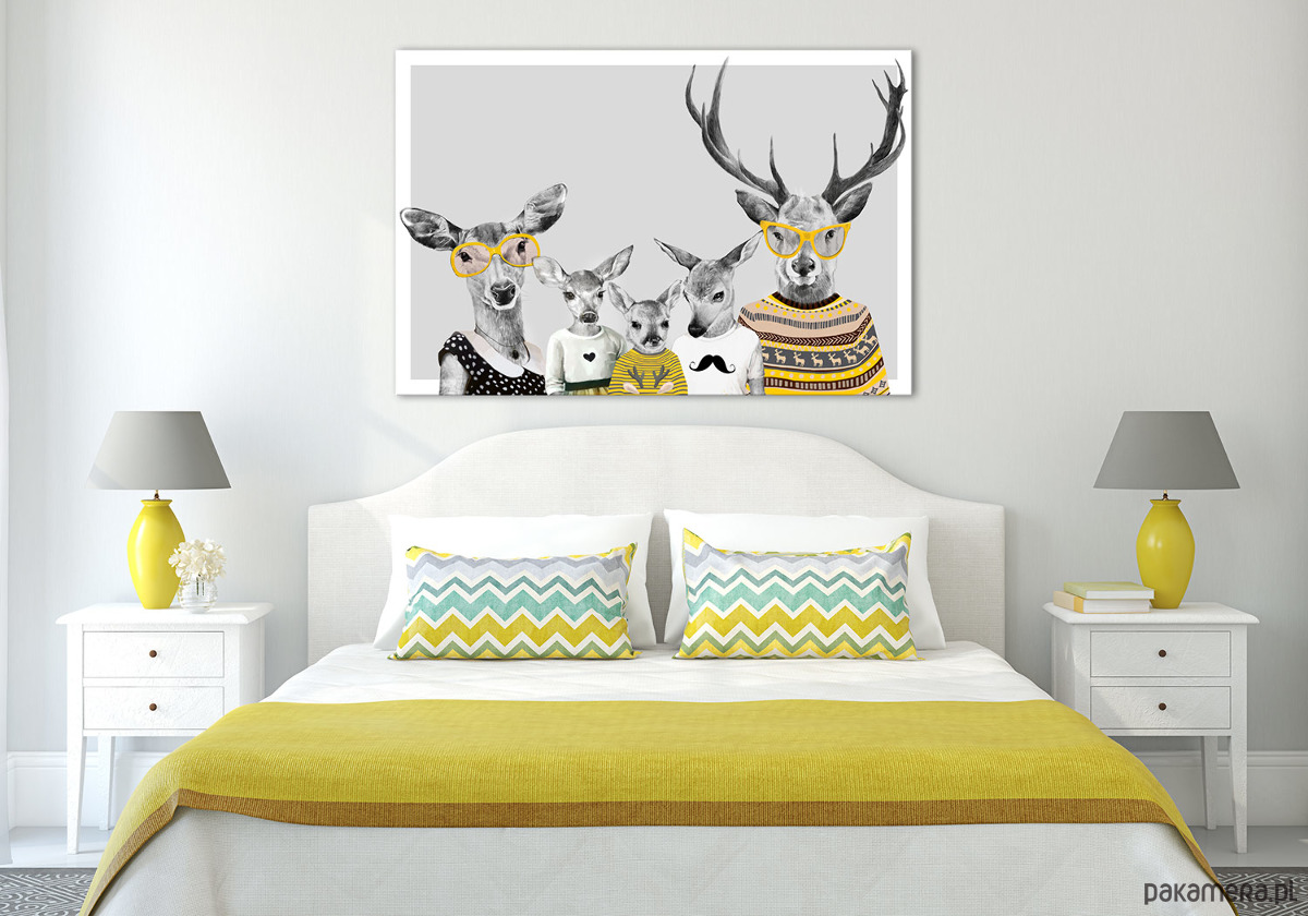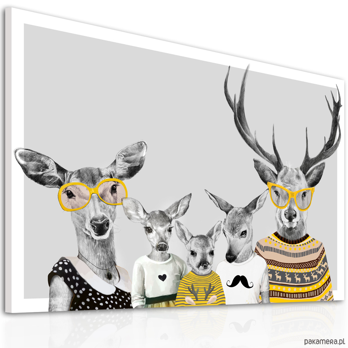 Obraz na płótnie „Rodzina jeleni w ubraniach – żółte akcenty” to stylowa dekoracja, która łączy w sobie humor, design i nowoczesną estetykę. Artystyczna grafika przedstawia rodzinę jeleni w modnych stylizacjach, ozdobionych żółtymi detalami, które ożywiają wnętrze i przyciągają wzrok. Wysokiej jakości druk na płótnie canvas gwarantuje trwałość kolorów oraz eleganckie wykończenie. Ten nowoczesny obraz doskonale sprawdzi się w salonie, biurze, sypialni lub pokoju dziecięcym, dodając przestrzeni charakteru i odrobiny artystycznego luzu.