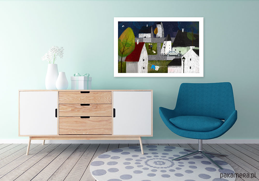 Wysokiej jakości autorski projekt wydrukowany na płótnie i naciągnięte na solidny drewniany blejtram. Dodatkowo do zestawu załączone są kliny napinające oraz zawieszka do montowania obrazu. Metoda produkcji: -Obraz drukowany na płótnie za pomocą ekologicznych, bezwonnych tuszy pigmentowych firmy EPSON (fotograficzna jakość, doskonałe przejścia tonalne). -Posiada zadrukowane boki oraz zawieszkę z tyłu obrazu. Wymiary: 120x80cm (Istnieje możliwość wykonania obrazu w innym rozmiarze, w tym celu proszę o kontakt).