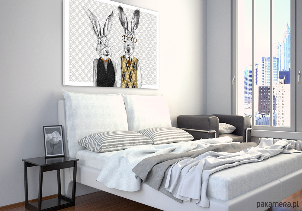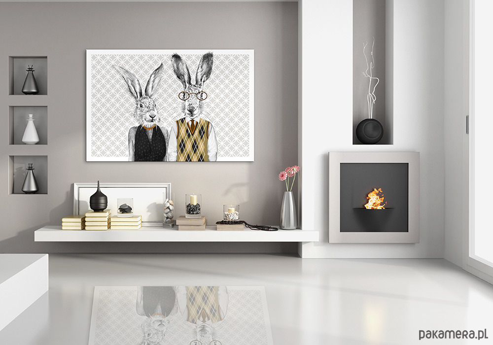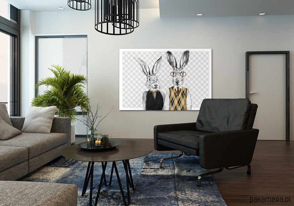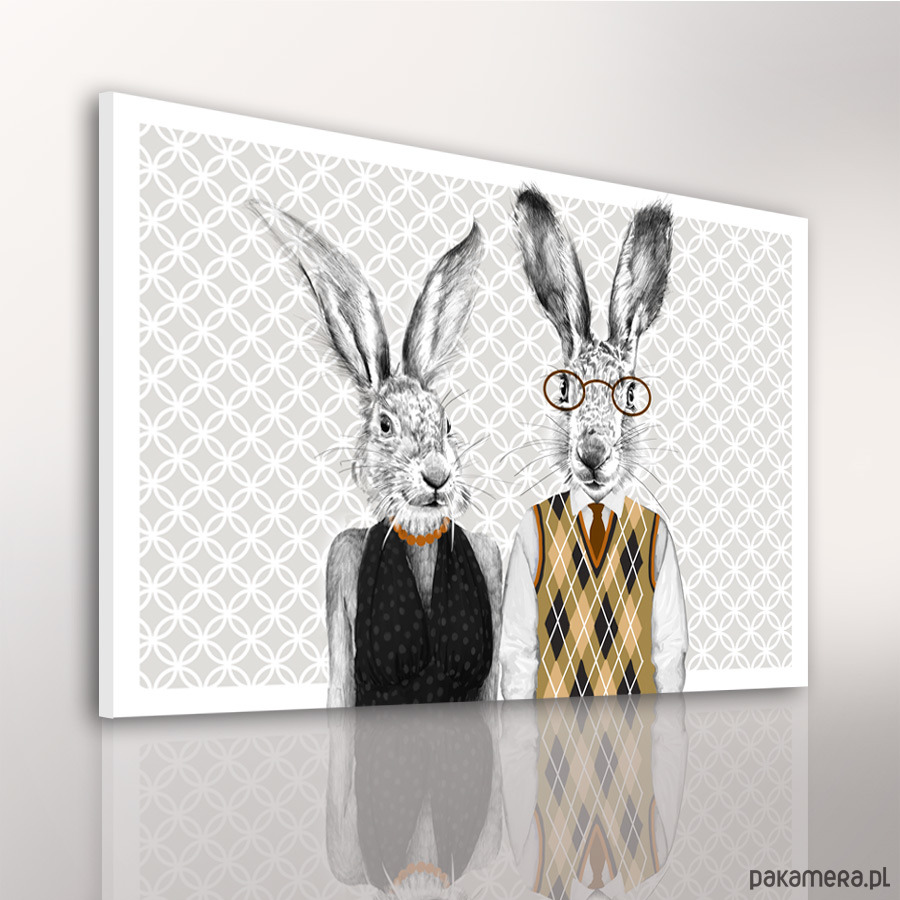 OBRAZ NA PŁÓTNIE 120x80cm Państwo Zającowie