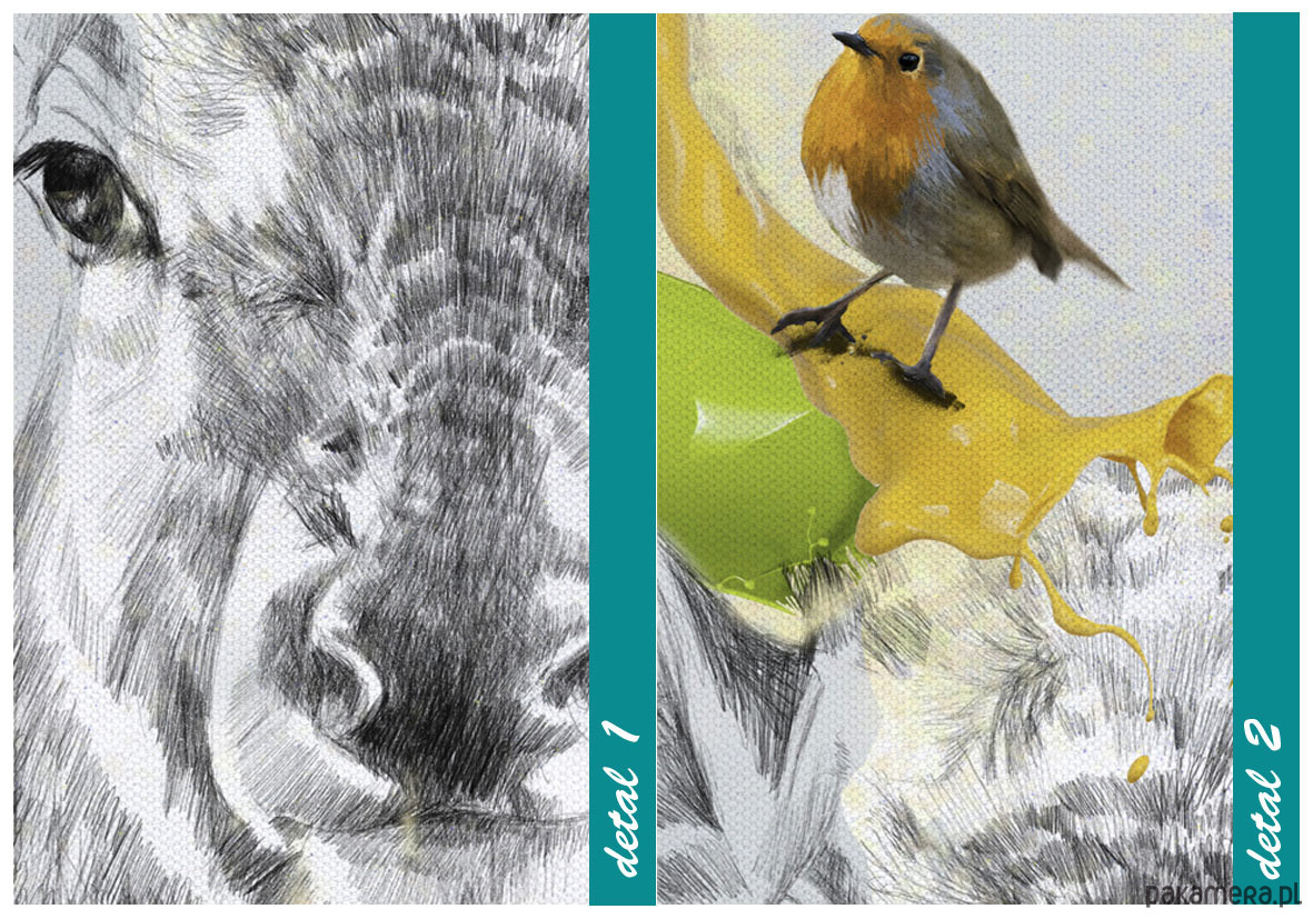 Wysokiej jakości autorski projekt wydrukowany na płótnie i naciągnięte na solidny drewniany blejtram. Dodatkowo do zestawu załączone są kliny napinające oraz zawieszka do montowania obrazu. Metoda produkcji: -Obraz drukowany na płótnie za pomocą ekologicznych, bezwonnych tuszy pigmentowych firmy EPSON (fotograficzna jakość, doskonałe przejścia tonalne). -Posiada zadrukowane boki oraz zawieszkę z tyłu obrazu. -Dodatkowo do każdego zestawu dołączone są kliny napinające. Wymiary: 60x80cm (Istnieje możliwość wykonania obrazu w innym rozmiarze, w tym celu proszę o kontakt).