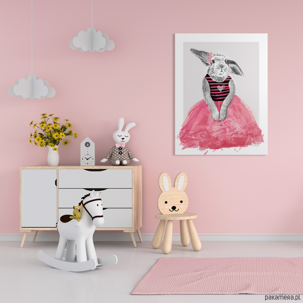 Idealna do pokoju dziecka, ale też jako przewrotny akcent w salonie czy sypialni. Trochę słodka, trochę z pazurem – taka, która nie ginie na ścianie.