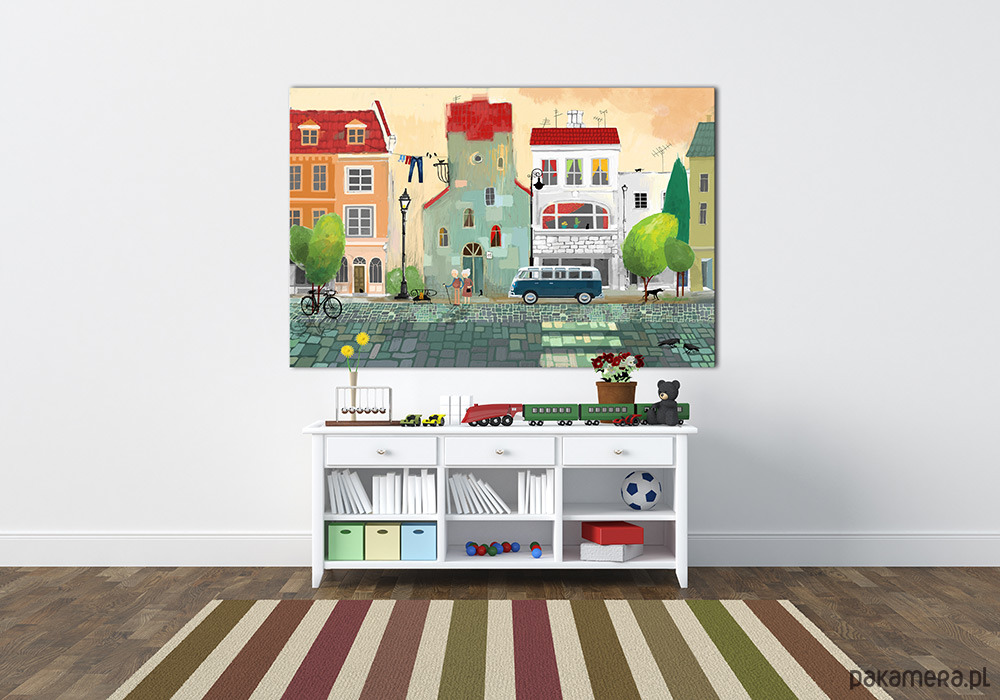 - Druk jest wodoodporny i trwały na ścieranie (w przypadku zabrudzenia można przetrzeć obraz mokrą ściereczką). Fotograficzna jakość oraz zadrukowane boki płótna sprawiają, że obraz nie wymaga oprawy.