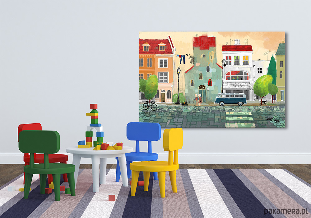 - Druk jest wodoodporny i trwały na ścieranie (w przypadku zabrudzenia można przetrzeć obraz mokrą ściereczką). Fotograficzna jakość oraz zadrukowane boki płótna sprawiają, że obraz nie wymaga oprawy.