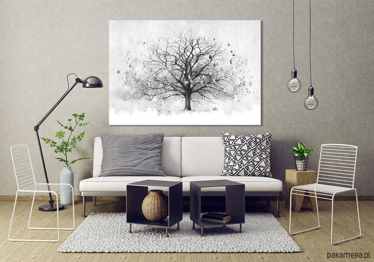 Obraz na płótnie „Drzewo – Abstrakcja w Szarości” to wyjątkowa dekoracja ścienna, która wprowadza do wnętrza harmonię, spokój i elegancję. Minimalistyczna kompozycja przedstawiająca nagie drzewo w odcieniach czerni, bieli i szarości doskonale komponuje się z nowoczesnymi, skandynawskimi oraz loftowymi aranżacjami.