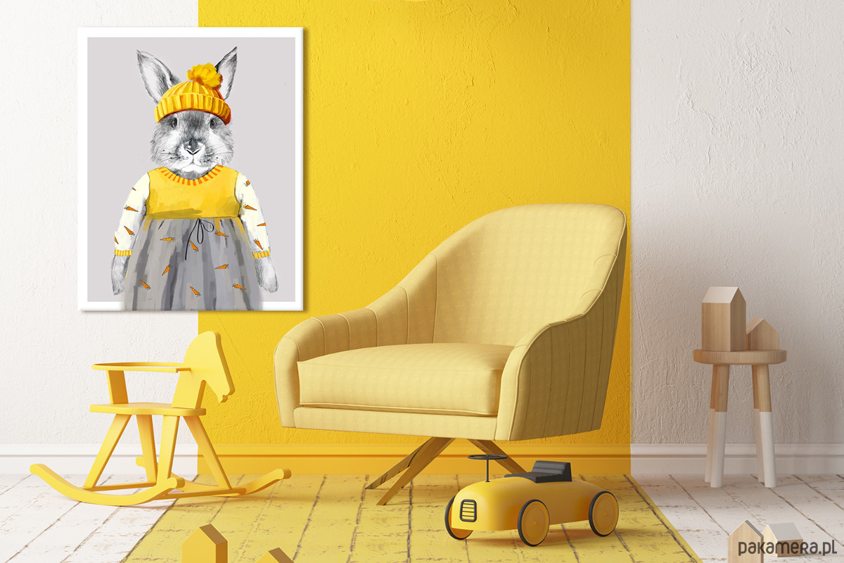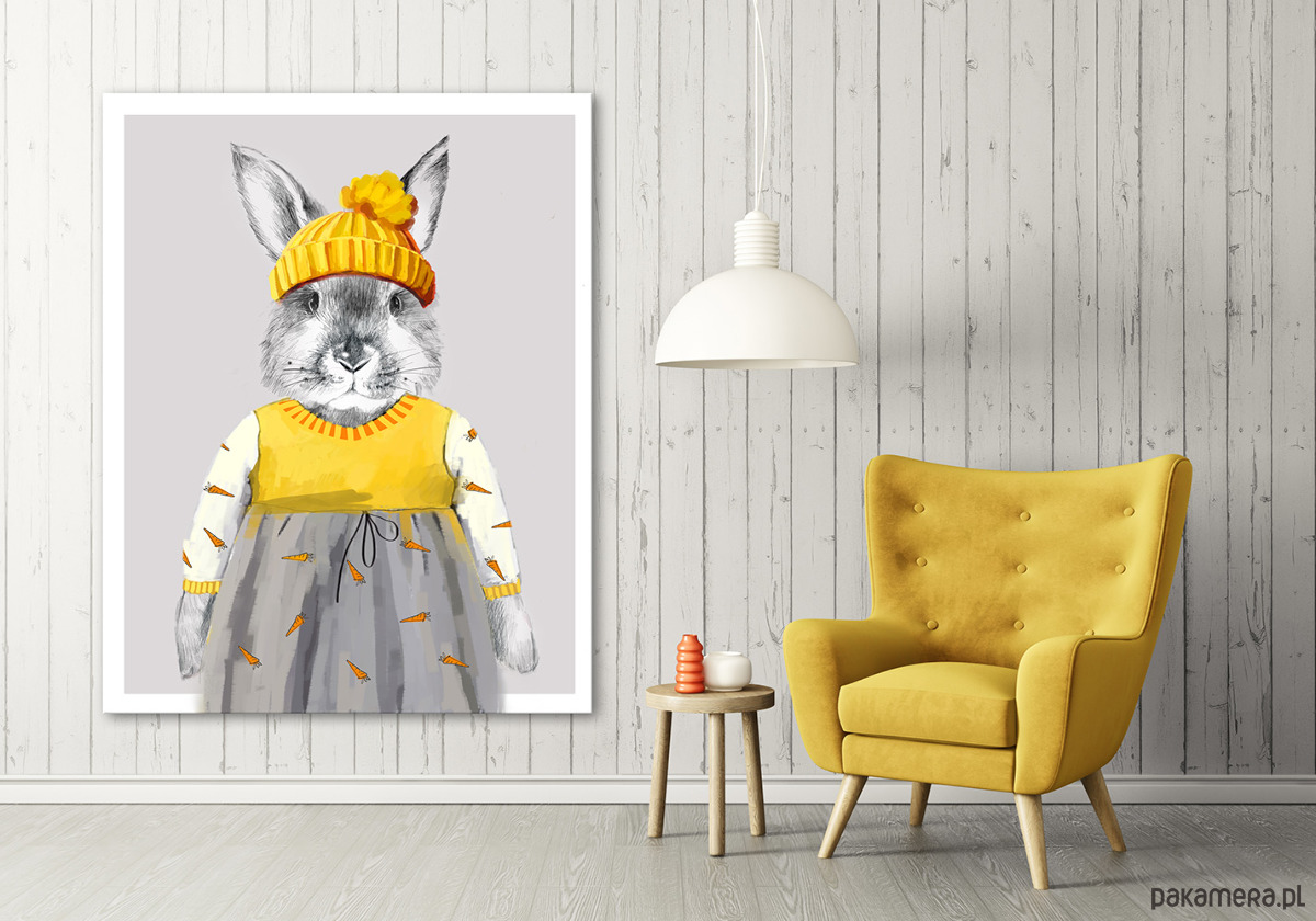 OBRAZ NA PŁÓTNIE - Króliczek w czapce 60x80