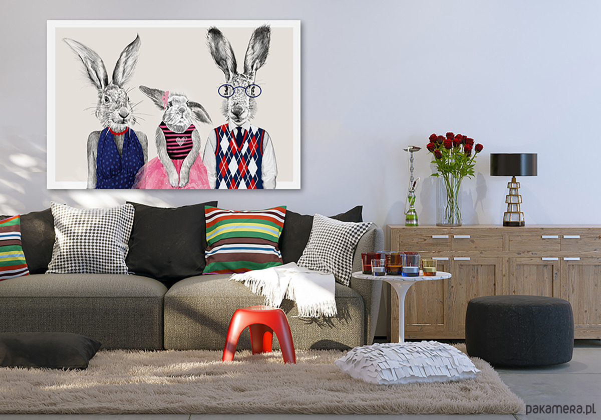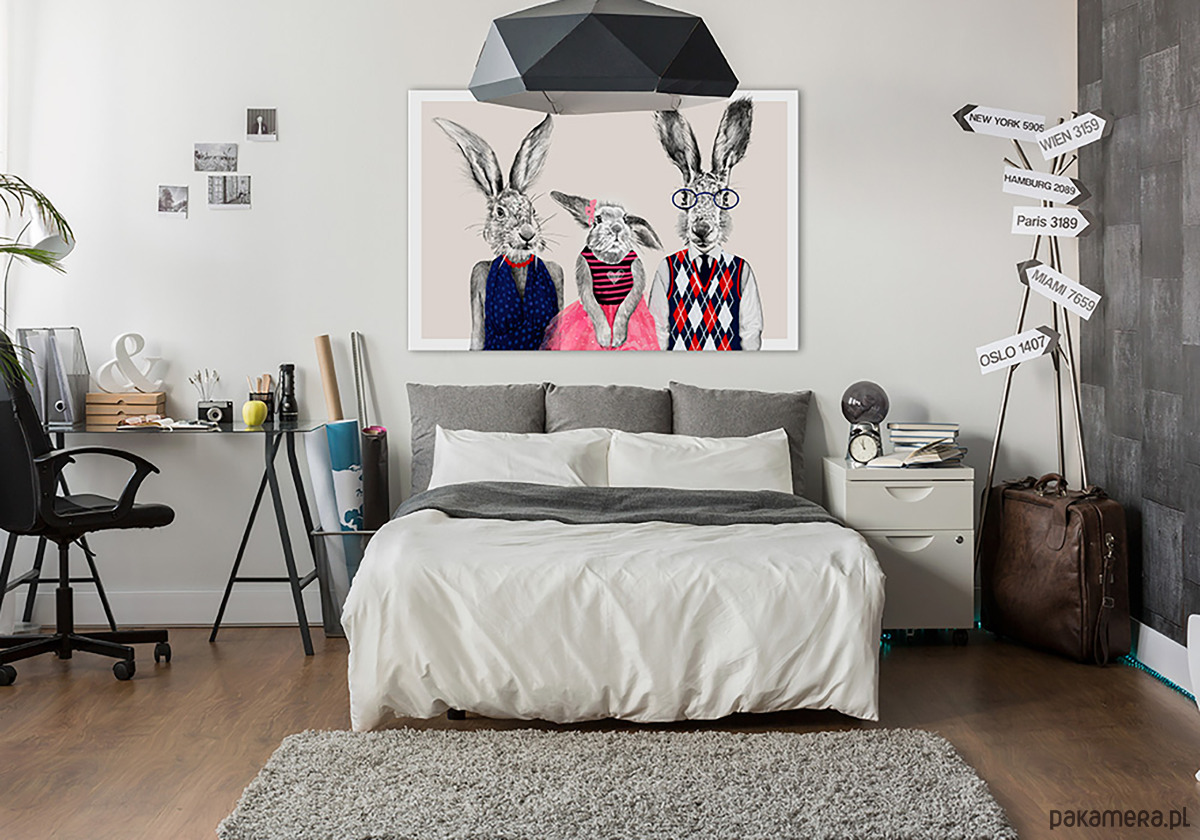 OBRAZ NA PŁÓTNIE -"Króliki Trio"120x80cm