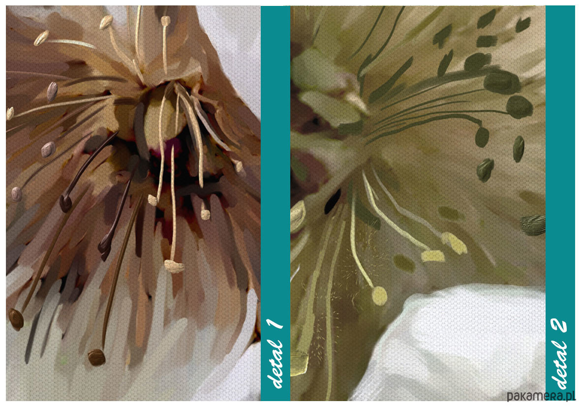 - Obrazy wykonane są na wysokiej jakości płótnie naciągniętym na drewniany blejtram. Gotowe do powieszenia, posiadają zawieszkę.
