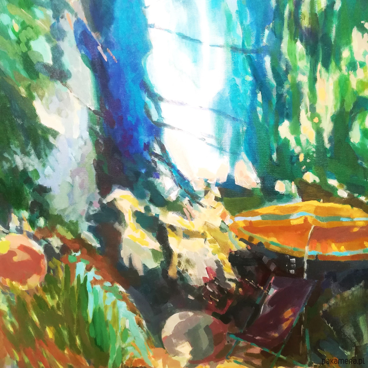 Obraz namalowany farbami akrylowymi na płótnie.