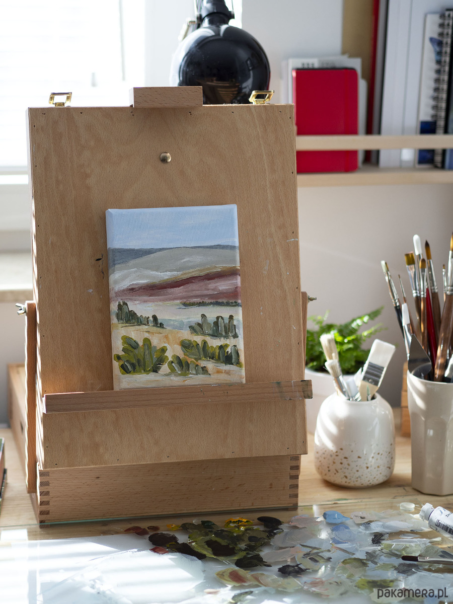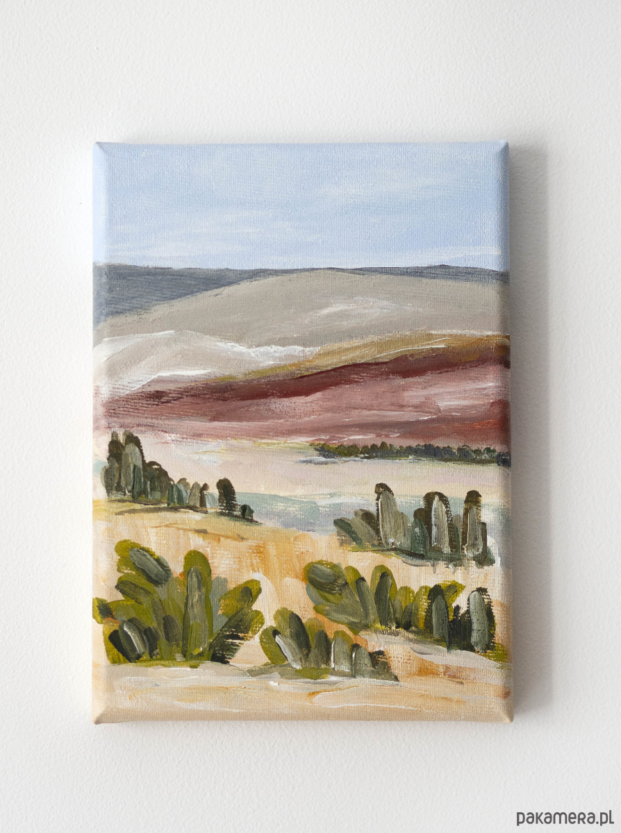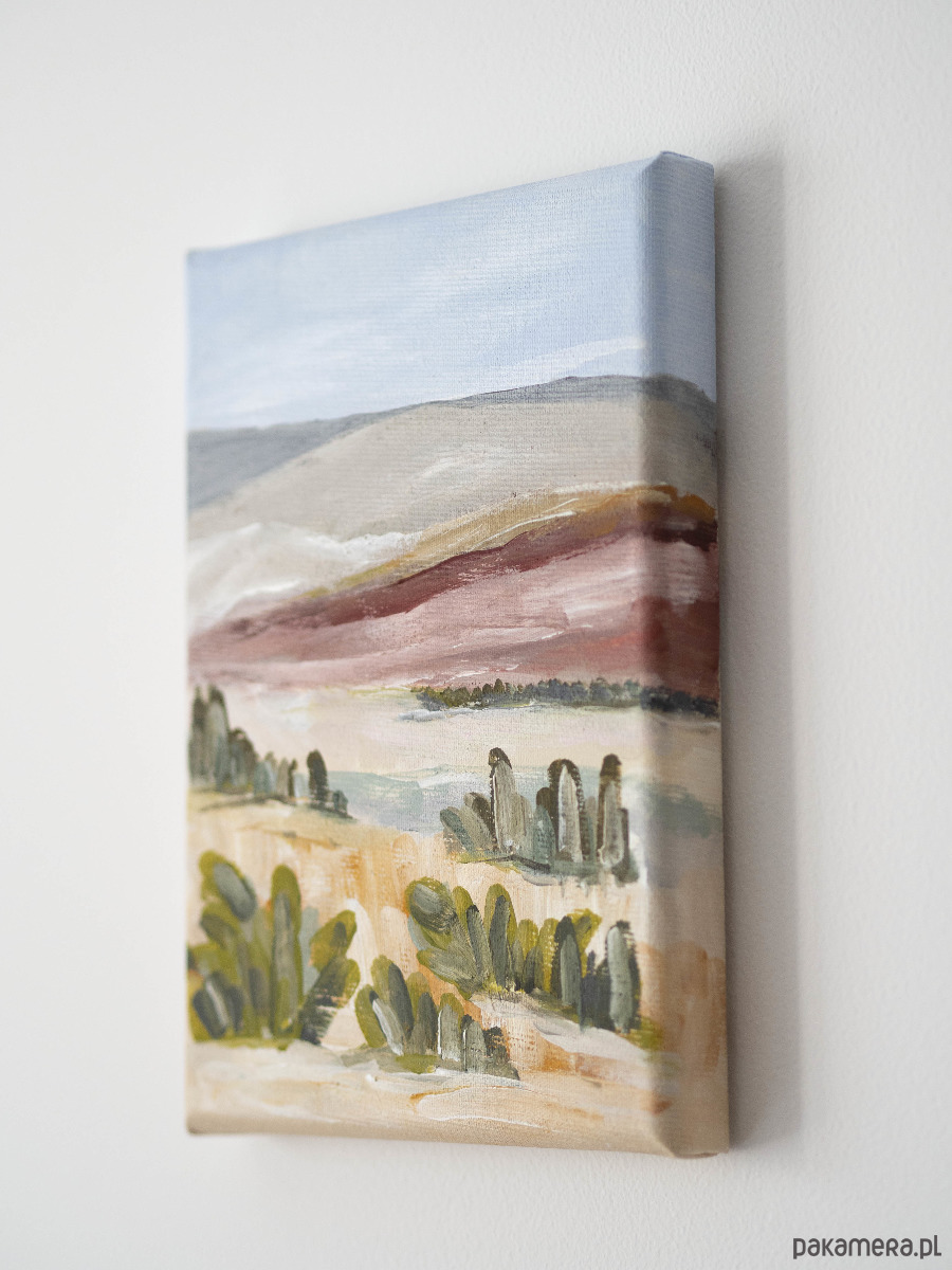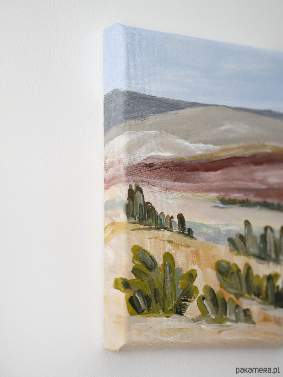 - podłoże: zagruntowane płótno bawełniane naciągnięte na drewniane krosna. Obraz gotowy do zawieszenia.