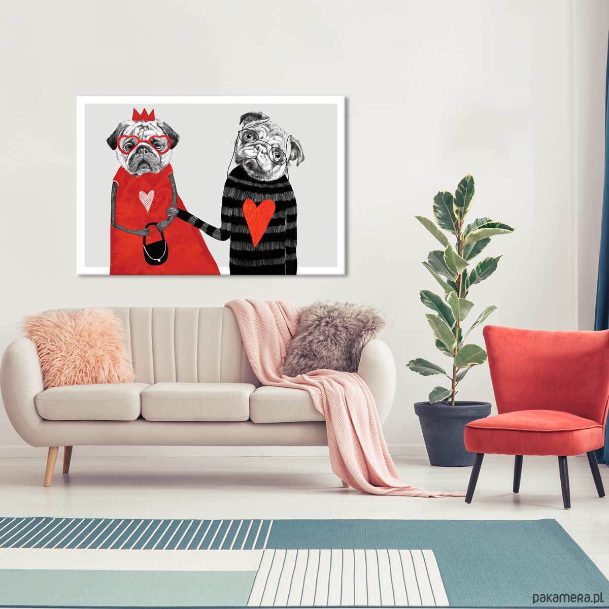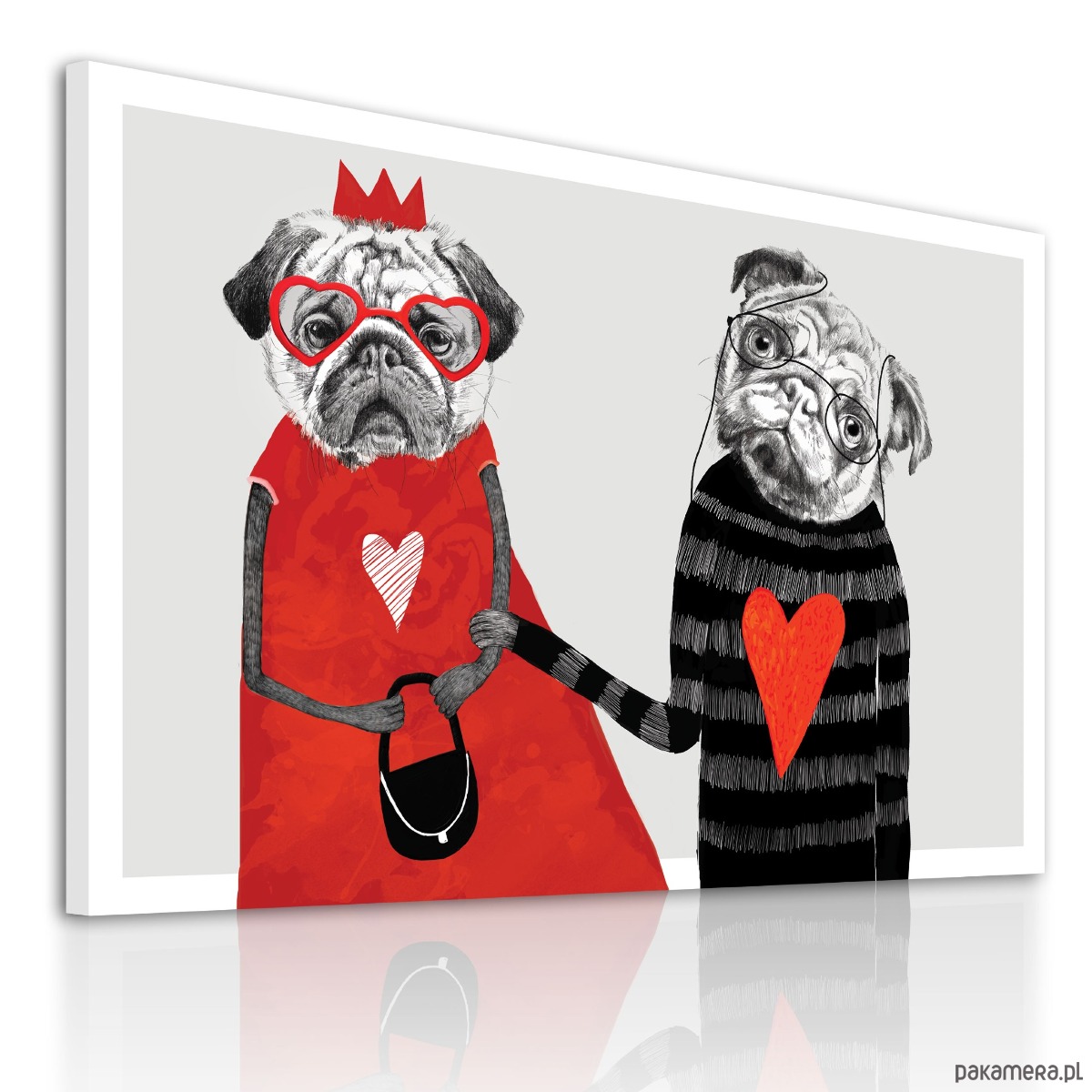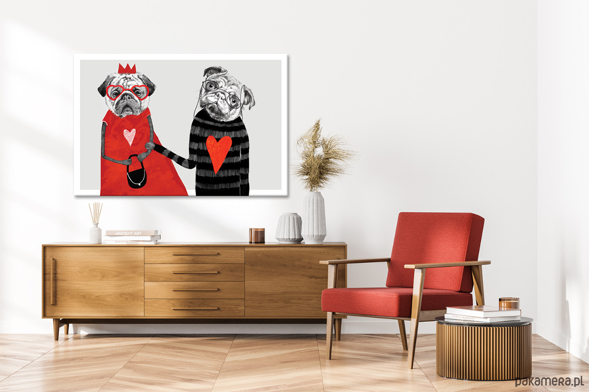 Miłosny duet z humorem i dystansem. Dwoje bohaterów, dwa serca i jedno uczucie, które widać od razu. Ilustracja idealna na walentynki, prezent ślubny albo rocznicę – dla par, które lubią czułość podaną z przymrużeniem oka. Świetnie odnajdzie się w sypialni, salonie albo jako zabawny akcent w nowoczesnym wnętrzu.