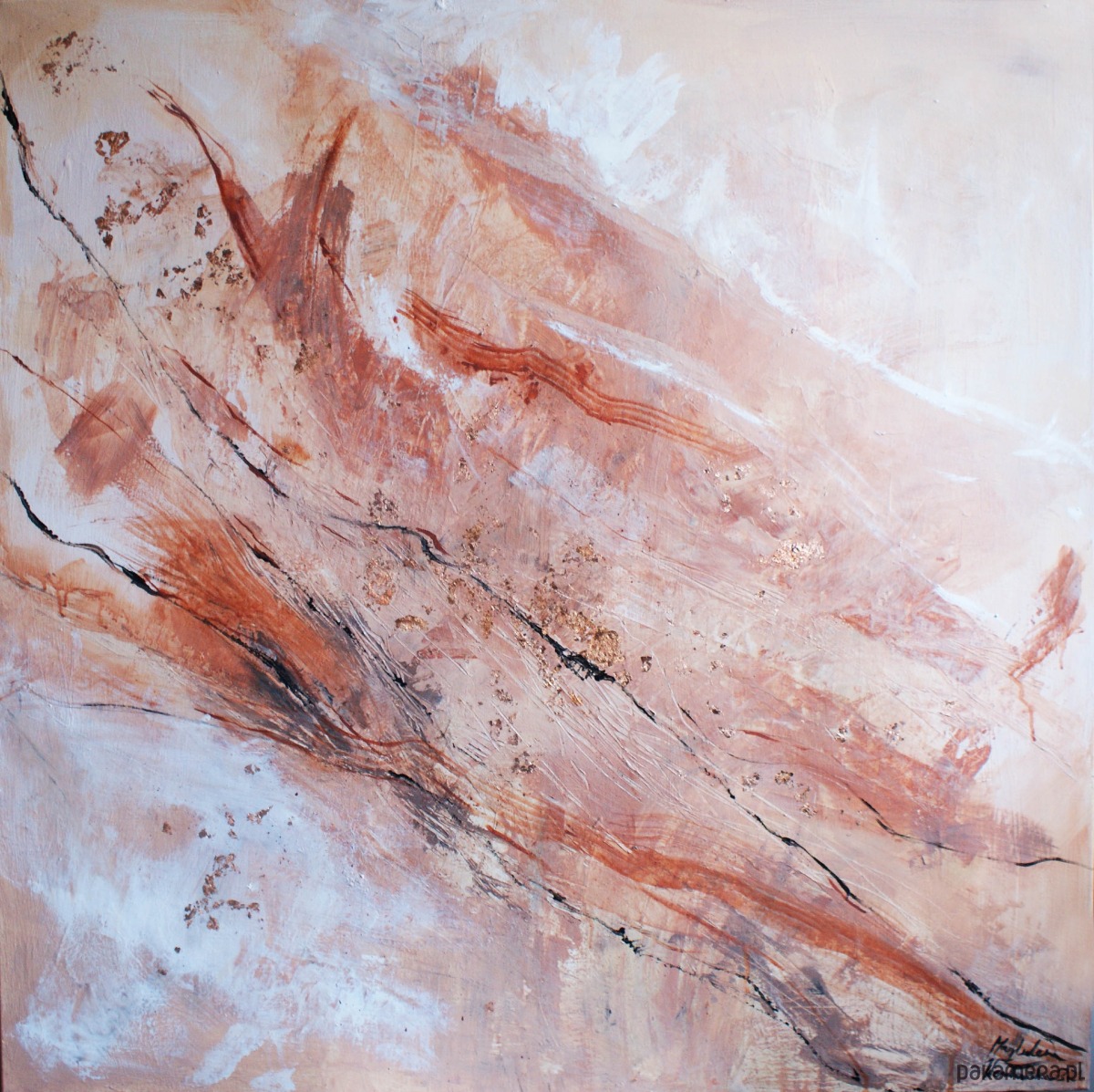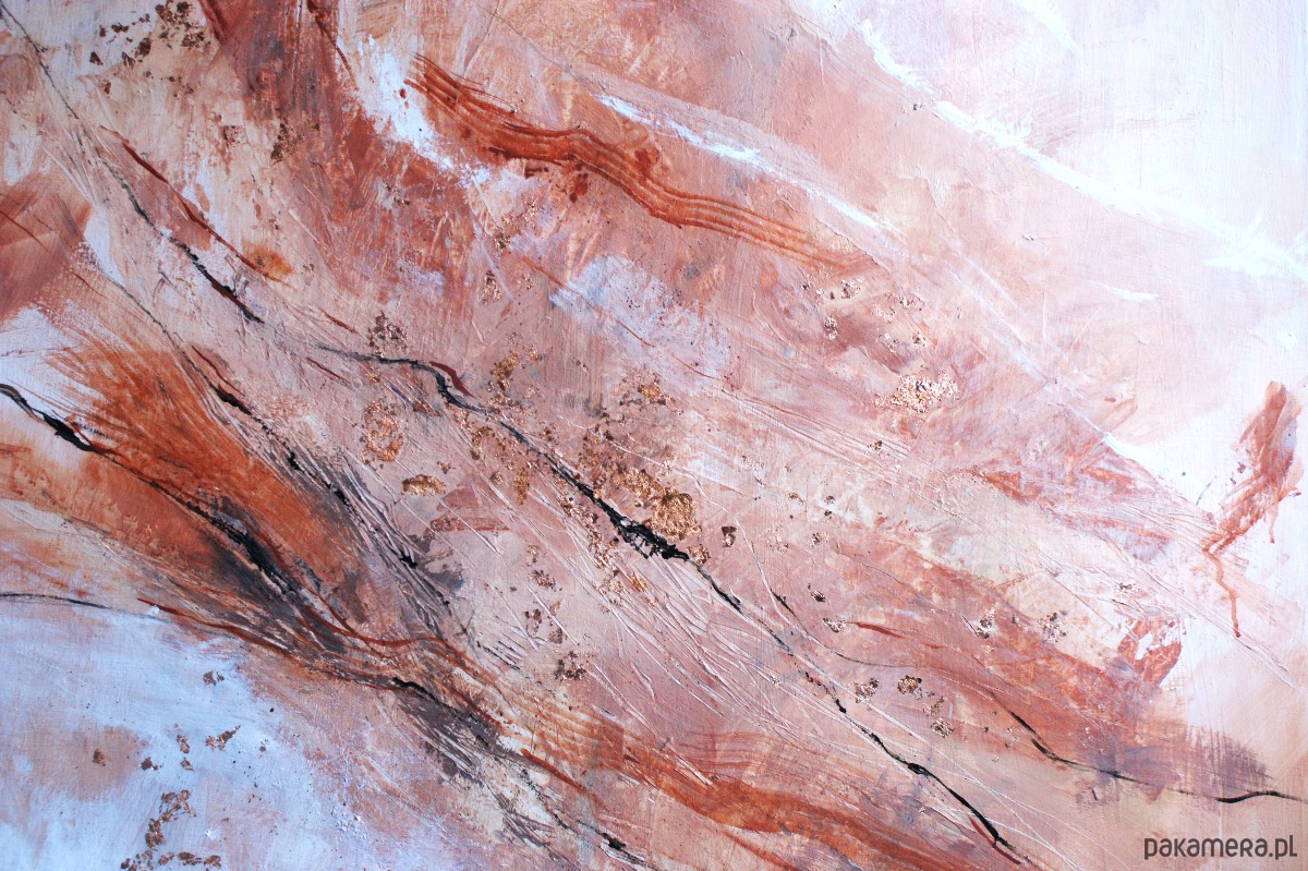 Technika mieszana: akryl, olej, płatki miedzi, na płótnie lnianym