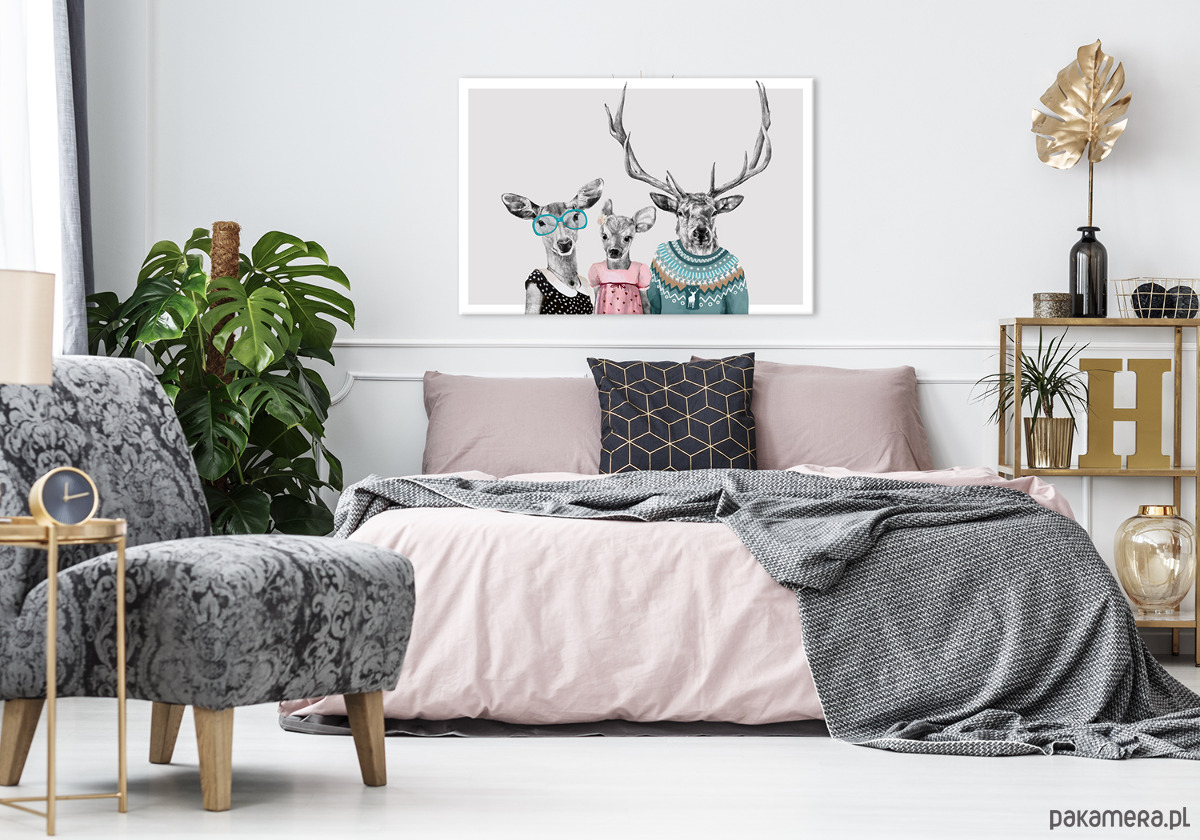 Zwierzęca ekipa w codziennych stylówkach, trochę powagi, trochę humoru i dużo charakteru. Ilustracja, która ociepla wnętrze i od razu przyciąga wzrok – idealna do salonu, sypialni albo pokoju dziecięcego. Fajny wybór na prezent dla rodziny, na nowe mieszkanie albo po prostu „bo ładne i inne”.