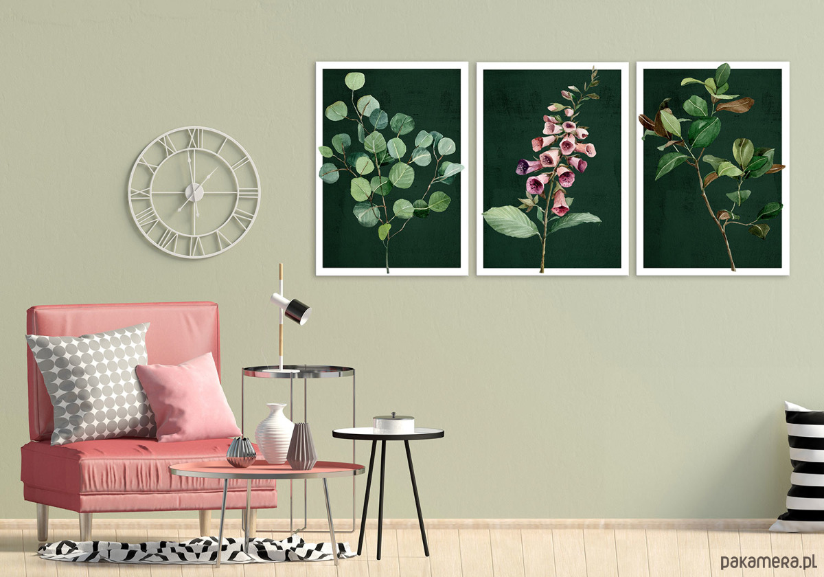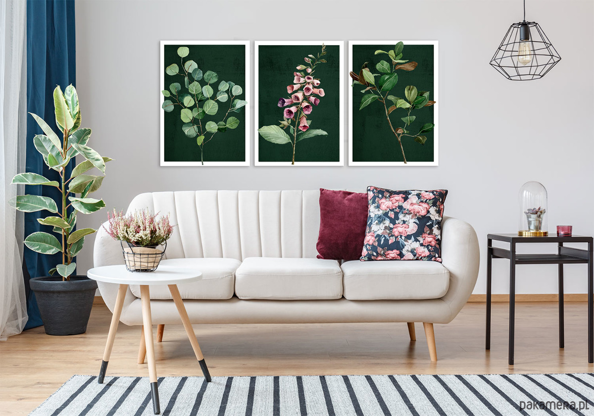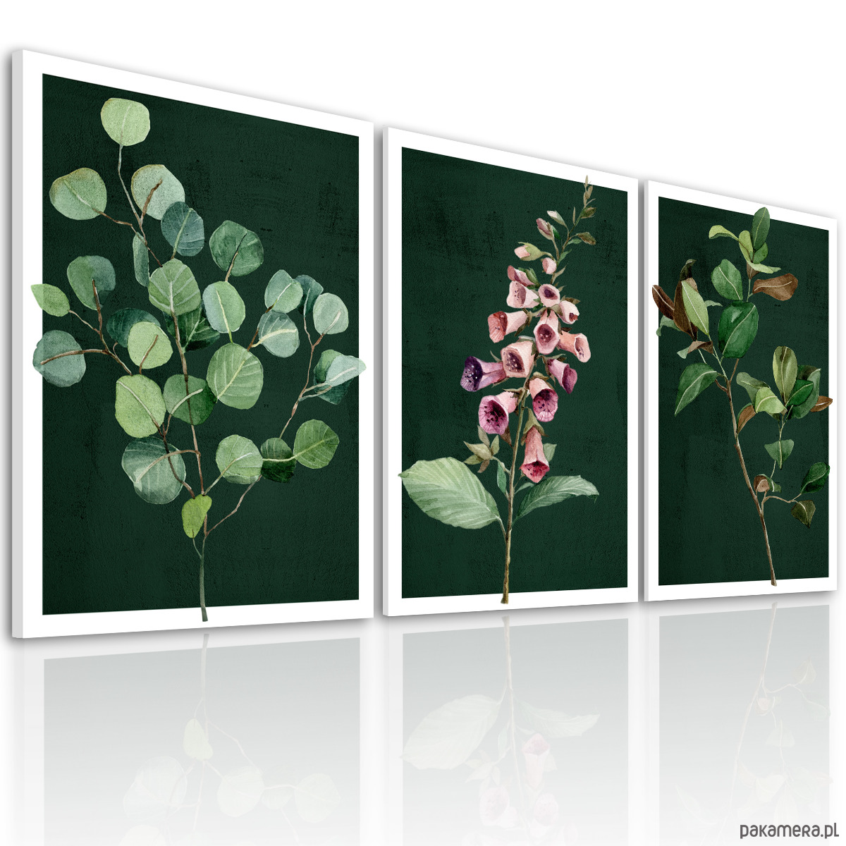OBRAZ NA PŁÓTNIE -ROŚLINKI 3 części 50x70cm