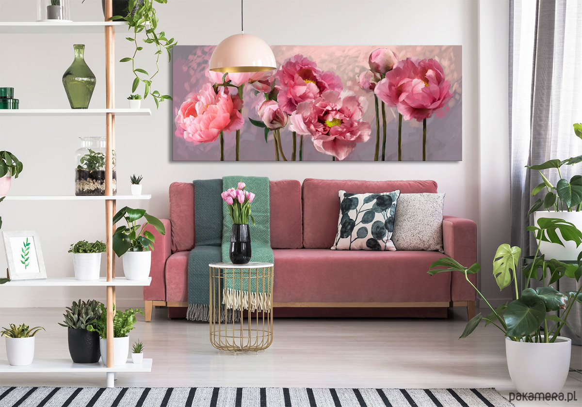 Obraz na płótnie - RÓZOWE PIWONIE 147x60cm
