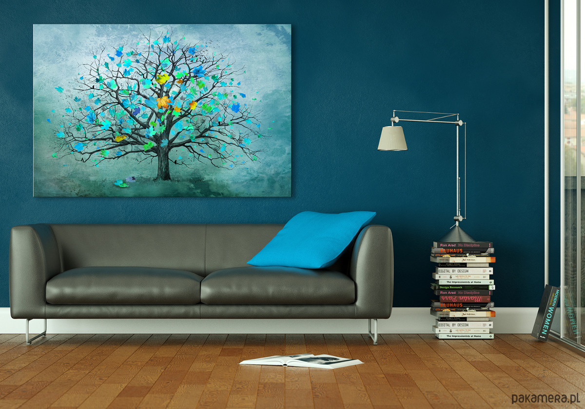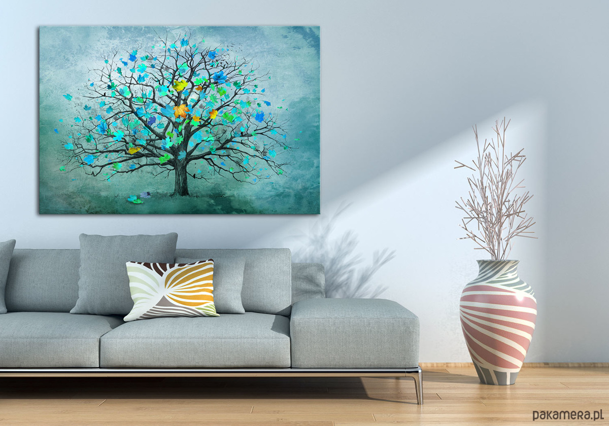 Obraz na płótnie z drzewem w turkusie 100x70cm