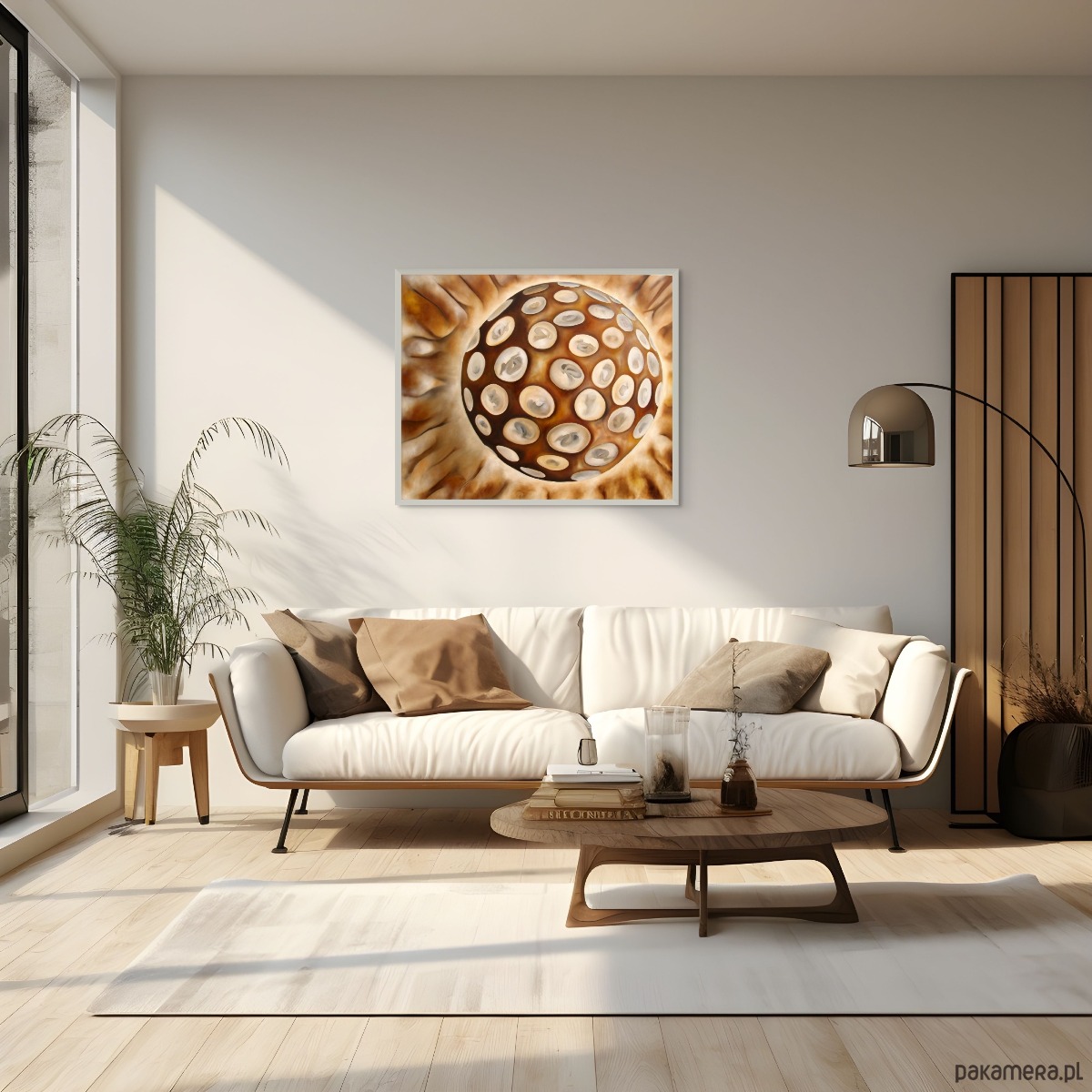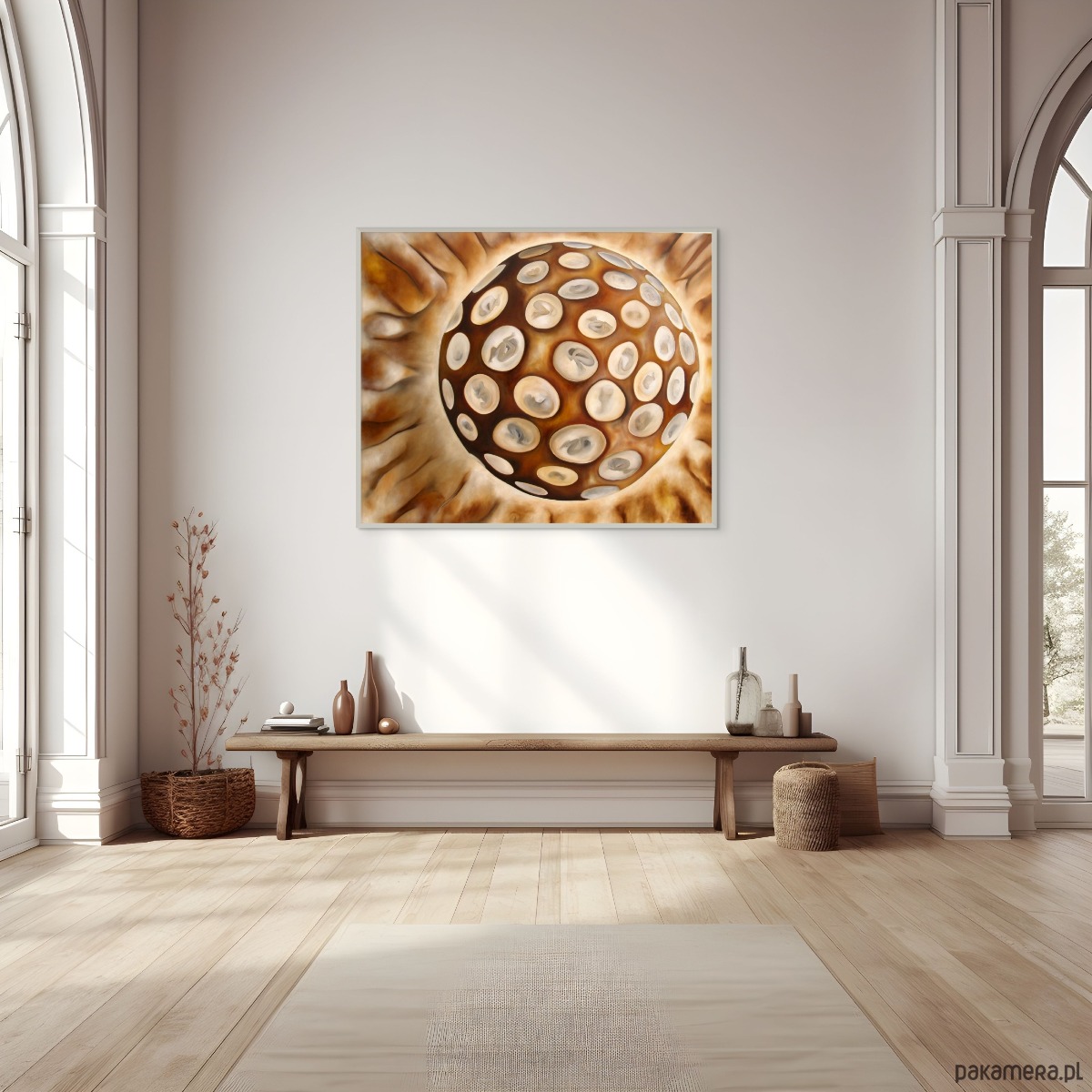 Obraz został wykonany na wysokiej jakości płótnie bawełnianym, z użyciem farb olejnych, co zapewnia trwałość i szlachetny wygląd.
