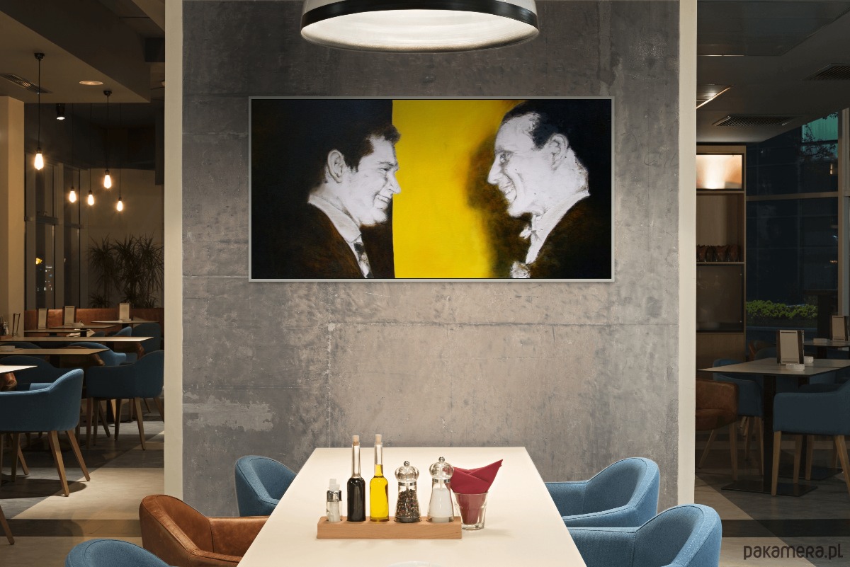 Obraz został wykonany na wysokiej jakości płótnie bawełnianym, z użyciem farb olejnych, co zapewnia trwałość i szlachetny wygląd.