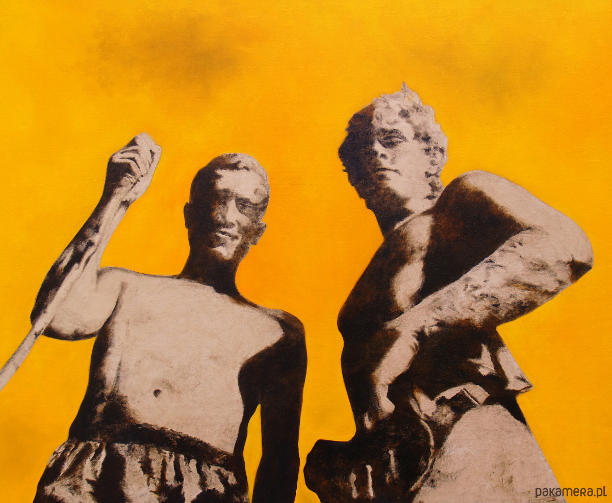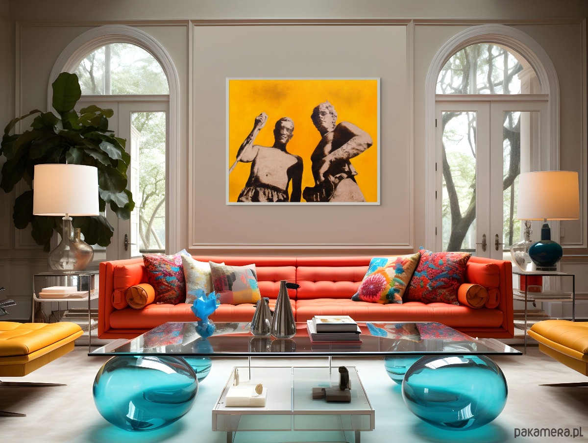 To praca, która buduje nastrój poprzez kolor, fakturę i miękkie przejścia form. Widoczne są delikatne odniesienia do postaci ludzkich, jednak całość pozostaje otwarta i nieoczywista — dzięki temu obraz dobrze sprawdza się jako element nowoczesnych wnętrz.
