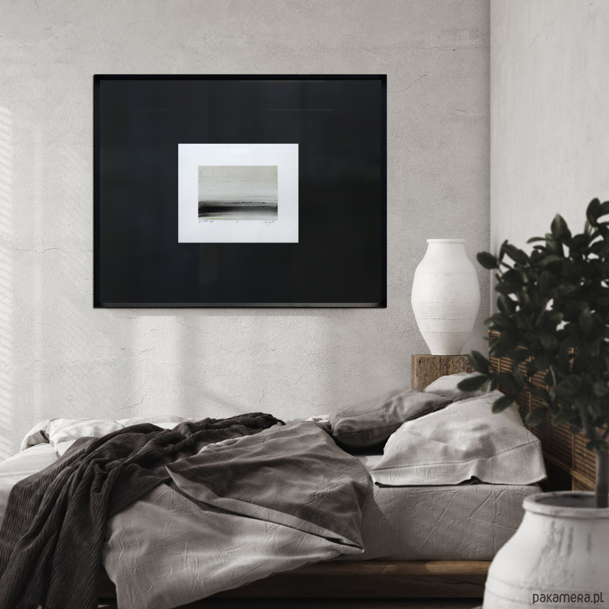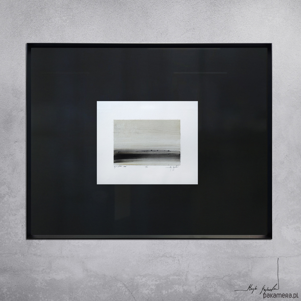 Wymiary całości z oprawą - 40x50 cm. Obraz oprawiony w czarną aluminiową ramę i antracytowe passe partout.