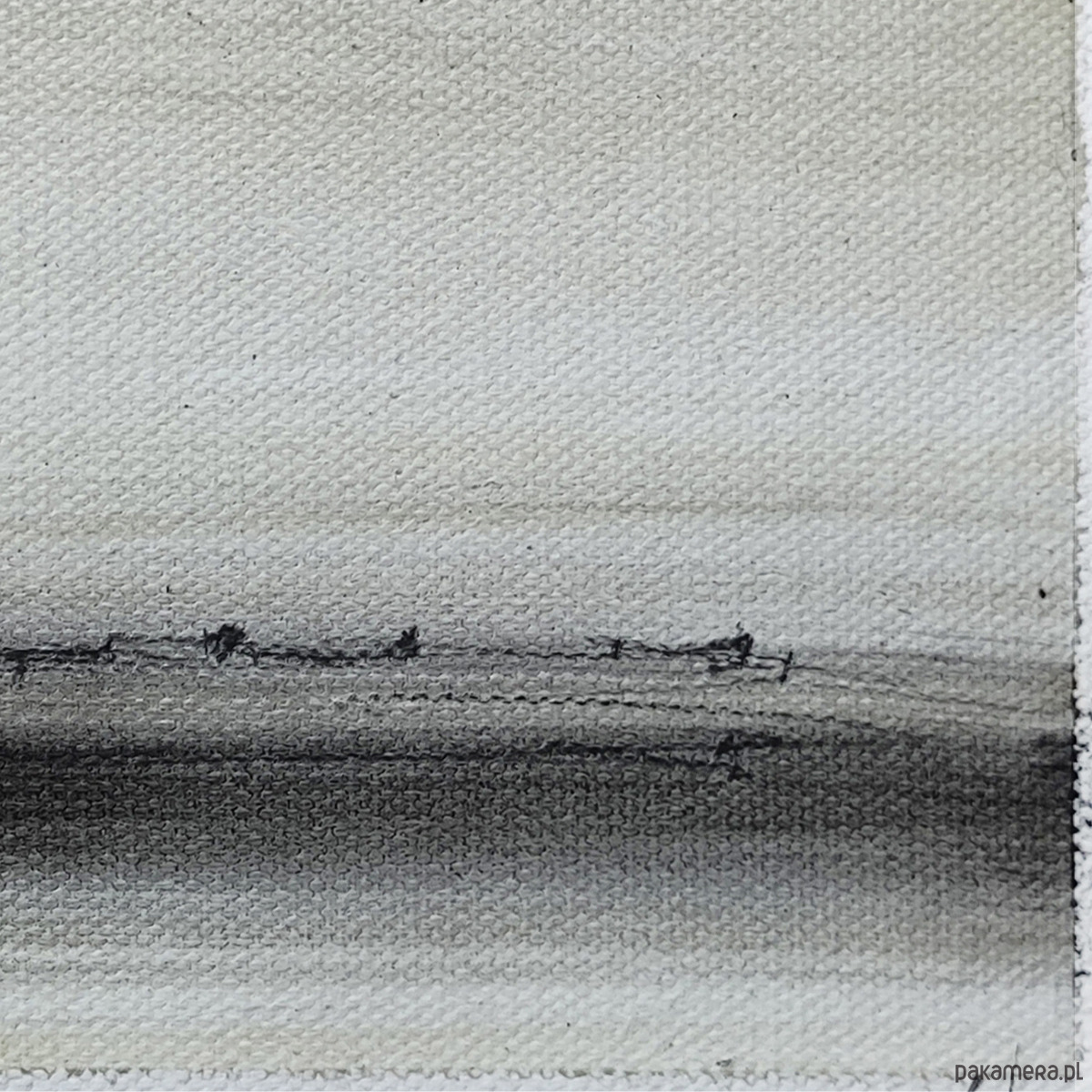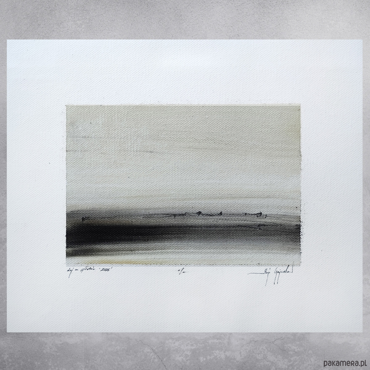 Obraz olejny w sepii wykonany na białym płótnie malarskim.