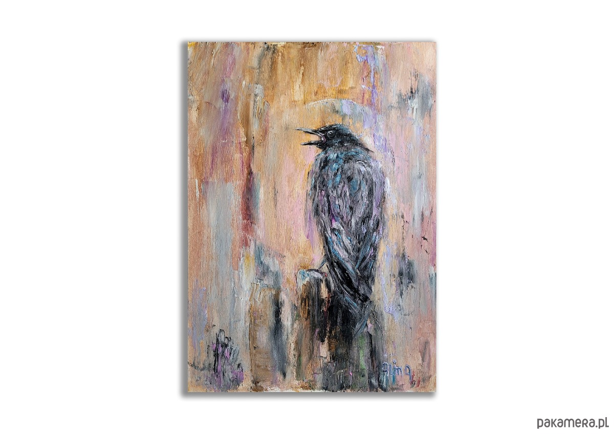 Obraz olejny ręcznie malowany "Kruk"