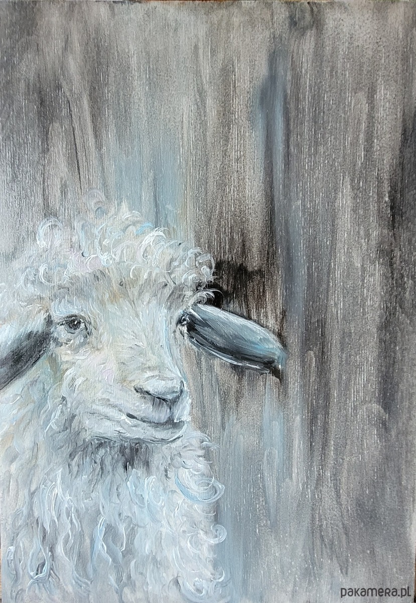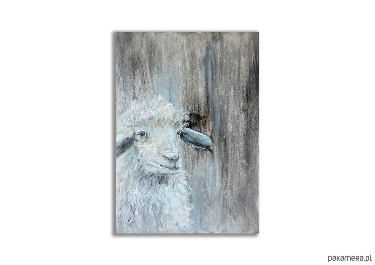 Obraz olejny ręcznie malowany. Owieczka. Baranek.