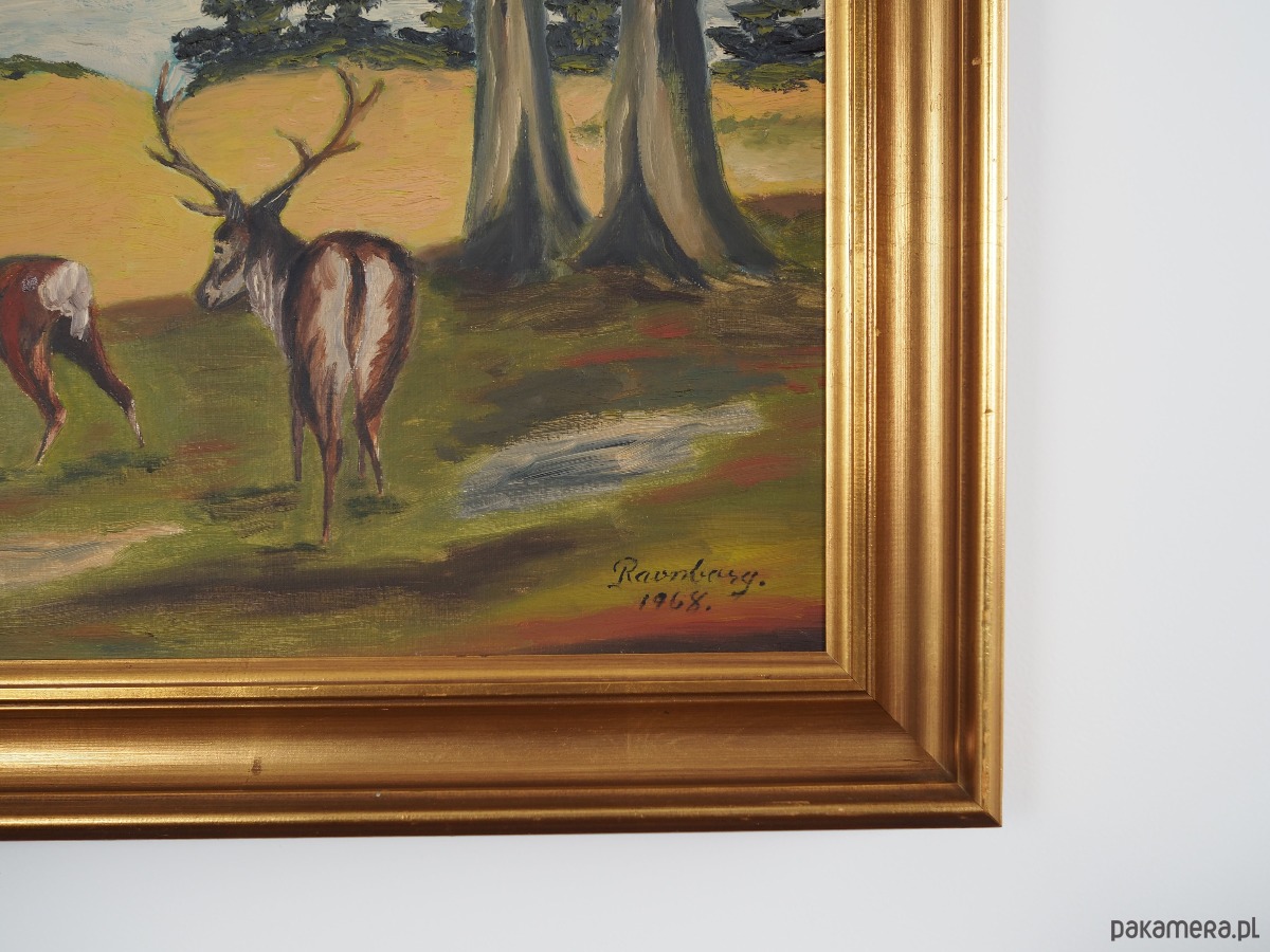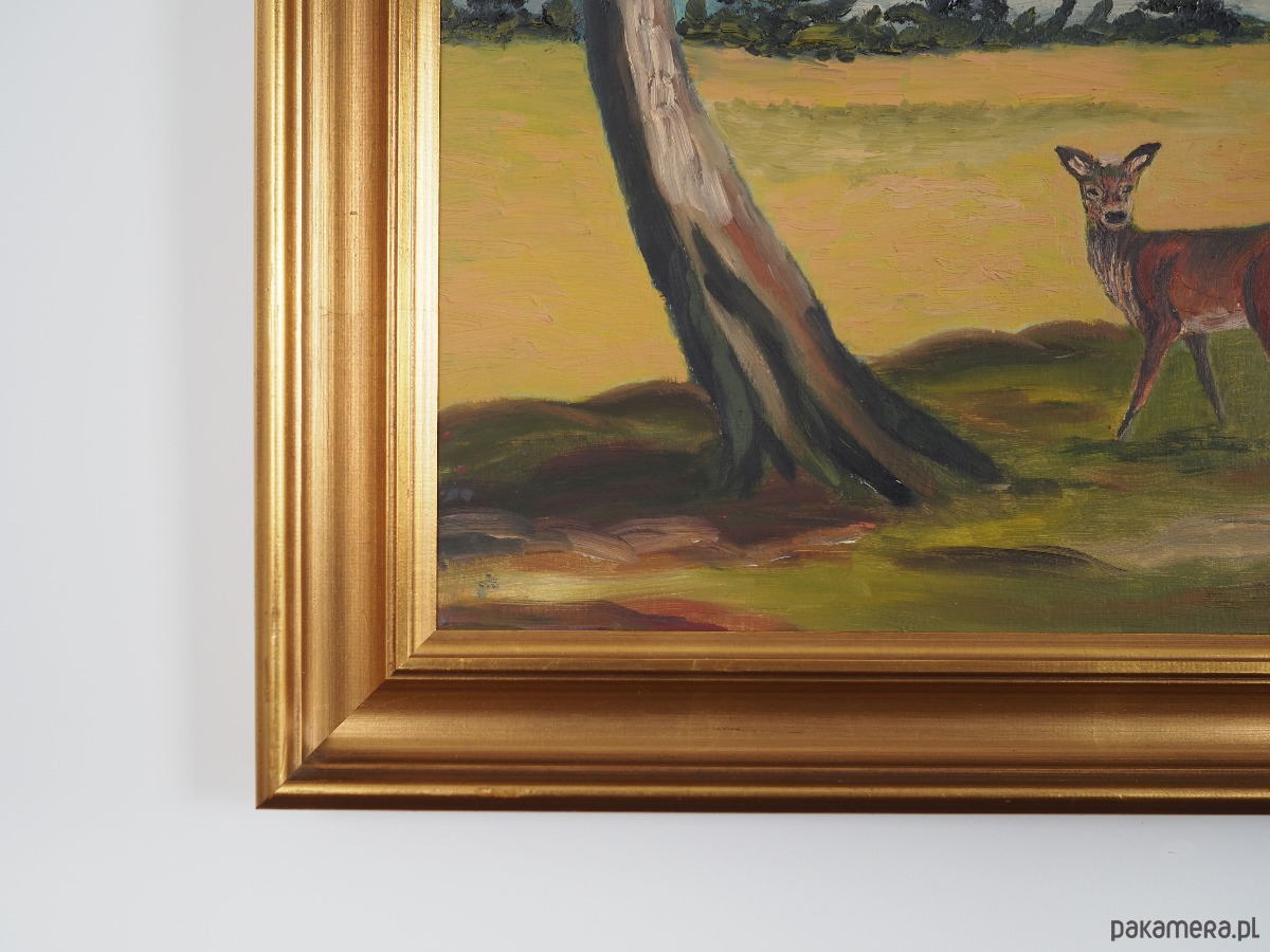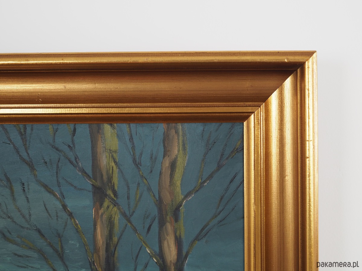 Stan: Płótno zachowane w stanie dobrym. Rama z widocznymi zarysowaniami oraz odpryskami. Większe ślady użytkowania zawsze przedstawiamy na zdjęciach. Posiada oryginalne zawiesie. Obraz nie był poddany renowacji. Produkt gotowy do zawieszenia.