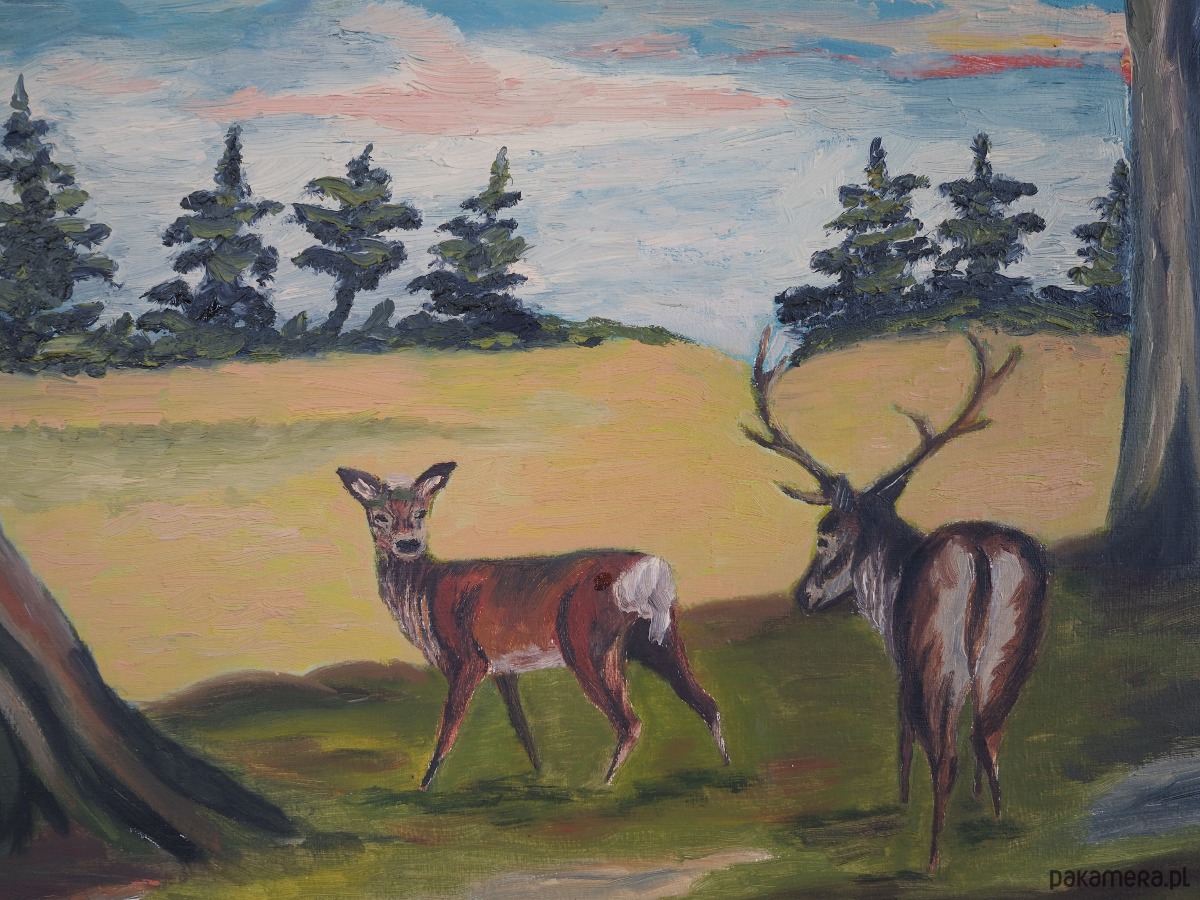 Obraz wykonany techniką olej na płótnie w latach 60-tych.