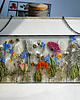 Szklany witraż z dekoracją z suszonych kwiatów i polnych roślin.